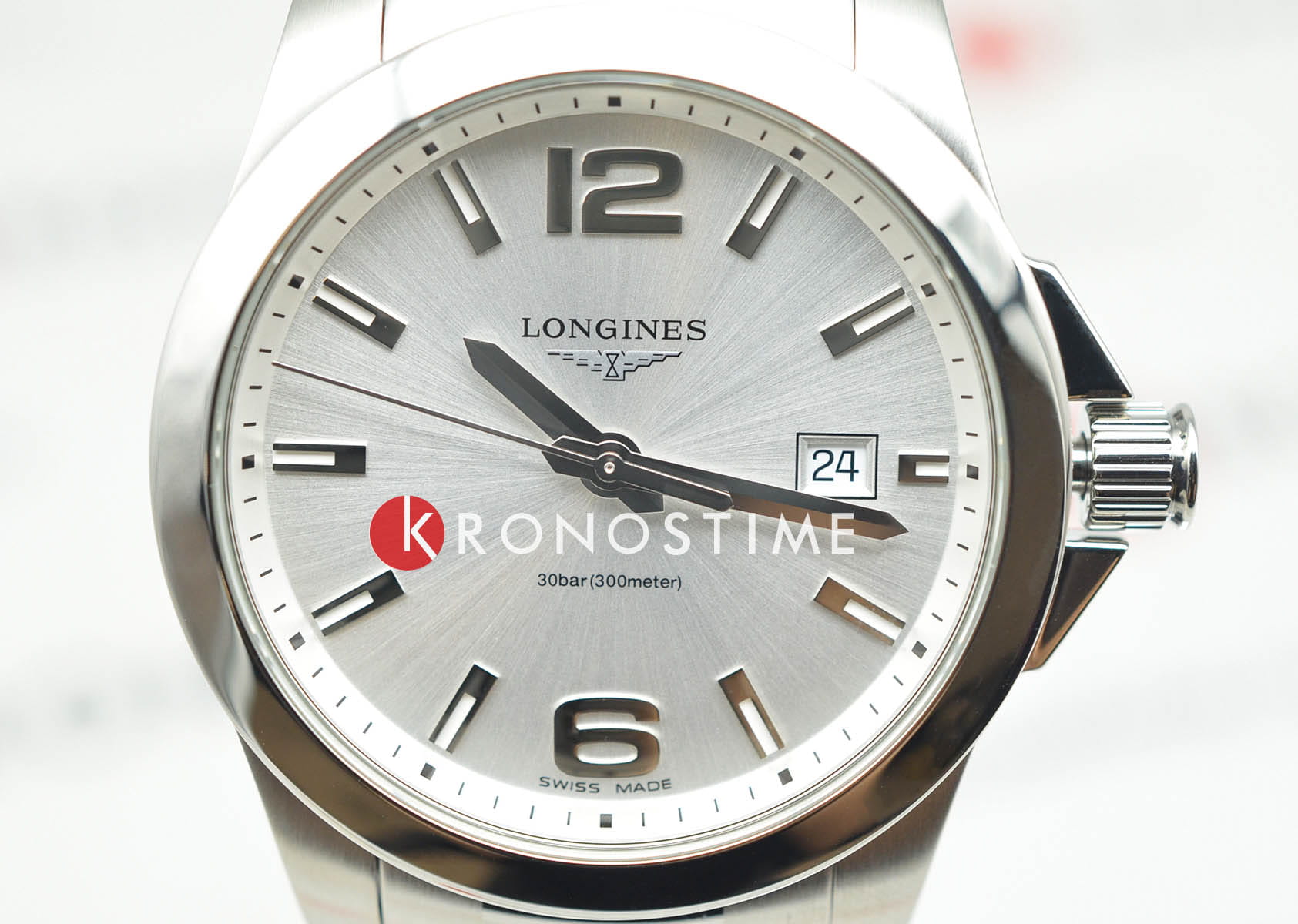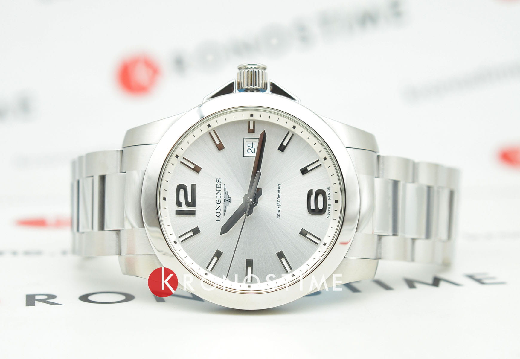 Часы Longines Conquest (артикул L37594766) сочетают спортивную элегантность и высокую функциональность, характерные для коллекции Conquest. Корпус диаметром 41 мм выполнен из нержавеющей стали с водозащитой до 30 бар (300 метров). Завинчивающаяся заводная головка и задняя крышка подчёркивают надёжность. Серебристый циферблат с солнечным узором оснащён накладными арабскими цифрами и индексами, стрелками с люминесцентным покрытиемЛюминесцентное покрытиеПозволяет считывать показания времени в темноте. Производители наносят на стрелки, часовые индексы, безель или поверхность циферблата светонакопительный состав, дающий холодное свечение., а также окошком даты в положении «3 часа». Циферблат защищён сапфировым стекломСапфировое стеклоПрочный и надёжный материал из кристалла сапфира синтетического происхождения, характеризующийся особой твёрдостью и устойчивостью к царапинам и повреждениям. с антибликовым покрытием.