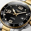 Мужские механические швейцарские часы с автоподзаводом Longines HydroConquest L3.781.3.56.7. Сапфировое стеклоСапфировое стеклоПрочный и надёжный материал из кристалла сапфира синтетического происхождения, характеризующийся особой твёрдостью и устойчивостью к царапинам и повреждениям. с антибликовым покрытием, устойчивое к мелким механическим повреждениям. Корпус часов изготовлен из нержавеющей стали. Вращающийся стальной безельБезельВнешний ободок, закрепляющий стекло. В спортивных часах так называется поворотное кольцо с делениями на циферблате, выполняет роль таймера – замеряет отрезки времени на шкале. Неподвижный безель – элемент декора. Однонаправленно вращающийся безель на дайверских часах позволяет фиксировать моменты погружения и выныривания на поверхность. с люминесцентным покрытиемЛюминесцентное покрытиеПозволяет считывать показания времени в темноте. Производители наносят на стрелки, часовые индексы, безель или поверхность циферблата светонакопительный состав, дающий холодное свечение. Superluminova из нержавеющей стали с PVD-покрытиемPVDУльтратонкое покрытие наносится в технике вакуумного напыления, сочетает в себе нитрид титана особой прочности со слоем золота или оксида хрома. Несёт в себе декоративную или защитную функцию. и керамики, защищенный от царапин, никогда не изнашивается и не выцветает. Стрелки и метки с люминесцентным покрытиемЛюминесцентное покрытиеПозволяет считывать показания времени в темноте. Производители наносят на стрелки, часовые индексы, безель или поверхность циферблата светонакопительный состав, дающий холодное свечение.. Окошко даты находится в положении 3 часа. Класс водозащиты: 300 метров, позволит плавать, нырять и заниматься другими водными видами спорта. Стальной браслет с частичным PVD-покрытиемPVDУльтратонкое покрытие наносится в технике вакуумного напыления, сочетает в себе нитрид титана особой прочности со слоем золота или оксида хрома. Несёт в себе декоративную или защитную функцию. на раскладной застёжкеРаскладная застёжкаТакой тип застёжки используется только на браслетах из металла. Она никогда не раскрывается полностью, происходит разделение на 2 и более частей. Раскладывающая застёжка снизит вероятность потери часов к минимуму. с удлинением для дайверов.