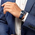 Дополнительные особенности включают сапфировое стеклоСапфировое стеклоПрочный и надёжный материал из кристалла сапфира синтетического происхождения, характеризующийся особой твёрдостью и устойчивостью к царапинам и повреждениям. с двухсторонним антибликовым покрытиемАнтибликовое покрытиеСлой оксида металла в 0,13-0,3 микрон, благодаря которому стекло часов не бликует и не отражает свет. Антибликовое покрытие уменьшает отражение света в 10 раз, обеспечивая отличную читаемость показателей циферблата., что обеспечивает отличную видимость циферблата в любых условиях. Стрелки и метки с люминесцентнымЛюминесцентное покрытиеПозволяет считывать показания времени в темноте. Производители наносят на стрелки, часовые индексы, безель или поверхность циферблата светонакопительный состав, дающий холодное свечение. покрытием облегчают чтение времени в темноте. Окошко даты удобно расположено на отметке 3 часа. Часы обладают классом водозащиты 100 метров, что позволяет использовать их для плавания и занятий водными видами спорта. Кожаный ремешок на стандартной застежке придает часам классический и элегантный вид.