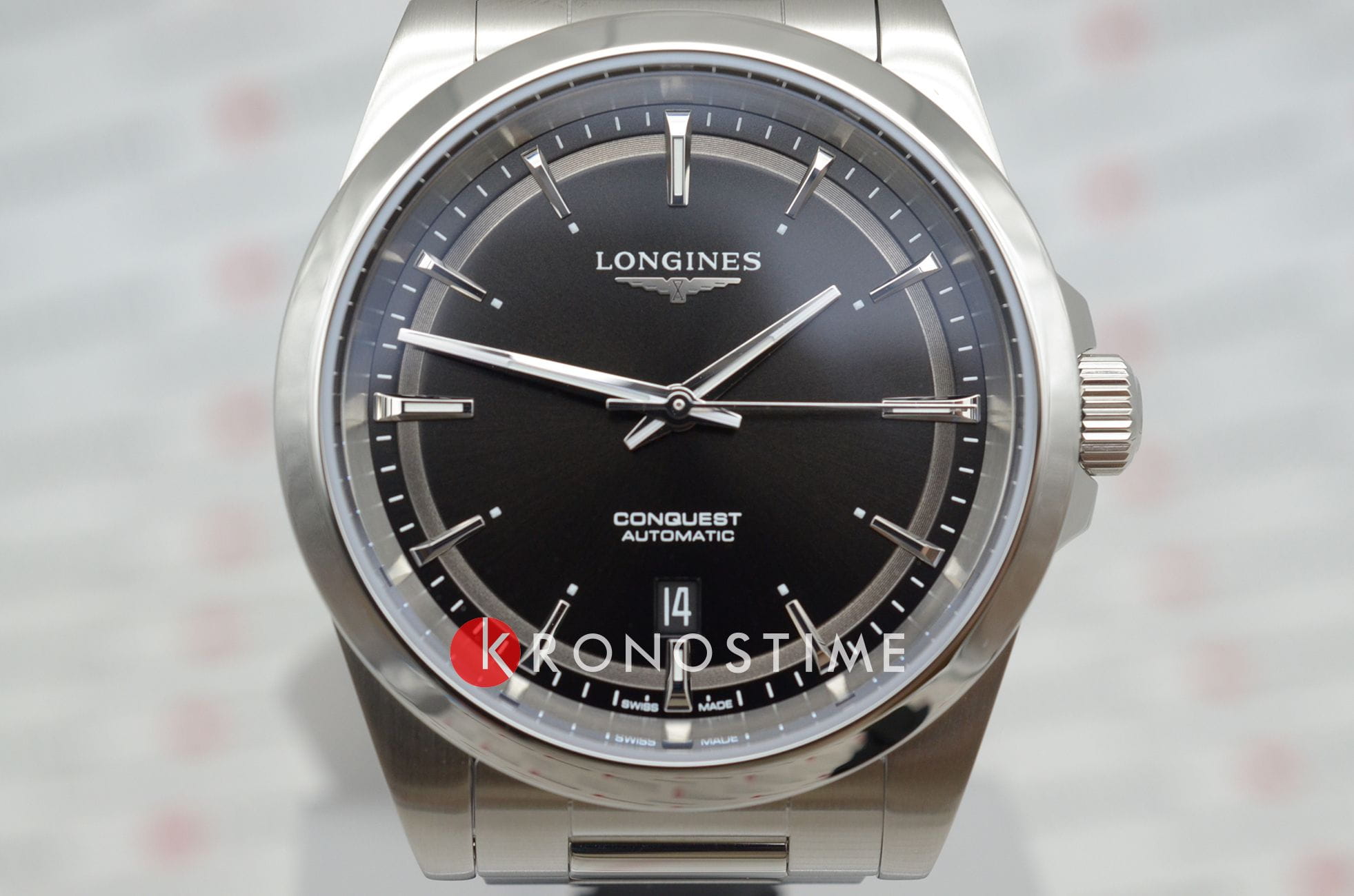 Longines Conquest Automatic (L3.830.4.52.6) — элегантные швейцарские часы, сочетающие классический дизайн и современные технологии. Корпус выполнен из нержавеющей стали диаметром 41 мм, придающим модели прочность и долговечность. Сапфировое стеклоСапфировое стеклоПрочный и надёжный материал из кристалла сапфира синтетического происхождения, характеризующийся особой твёрдостью и устойчивостью к царапинам и повреждениям. с антибликовым покрытиемАнтибликовое покрытиеСлой оксида металла в 0,13-0,3 микрон, благодаря которому стекло часов не бликует и не отражает свет. Антибликовое покрытие уменьшает отражение света в 10 раз, обеспечивая отличную читаемость показателей циферблата. защищает циферблат от царапин и гарантирует превосходную читаемость.Чёрный циферблат с солнечным узором оснащён серебристыми стрелками и метками с люминесцентным покрытиемЛюминесцентное покрытиеПозволяет считывать показания времени в темноте. Производители наносят на стрелки, часовые индексы, безель или поверхность циферблата светонакопительный состав, дающий холодное свечение. Super-LumiNova, обеспечивающим отличную видимость в условиях низкой освещённости. Механизм L888 с 72-часовым запасом хода обеспечивает высокую точность и надёжность. Браслет из нержавеющей стали на застёжке-бабочке с кнопкамиЗастёжка "бабочка"Такой вид застёжки дополняется предохранителями, помогающими избежать случайного раскрытия браслета. Обладают изящным исполнением. и предохранителем гарантирует комфорт и надёжную фиксацию на запястье. Функциональность дополняется индикатором даты в положении "6 часов". Водонепроницаемость 100 метров делает модель подходящей для плавания и других водных активностей.