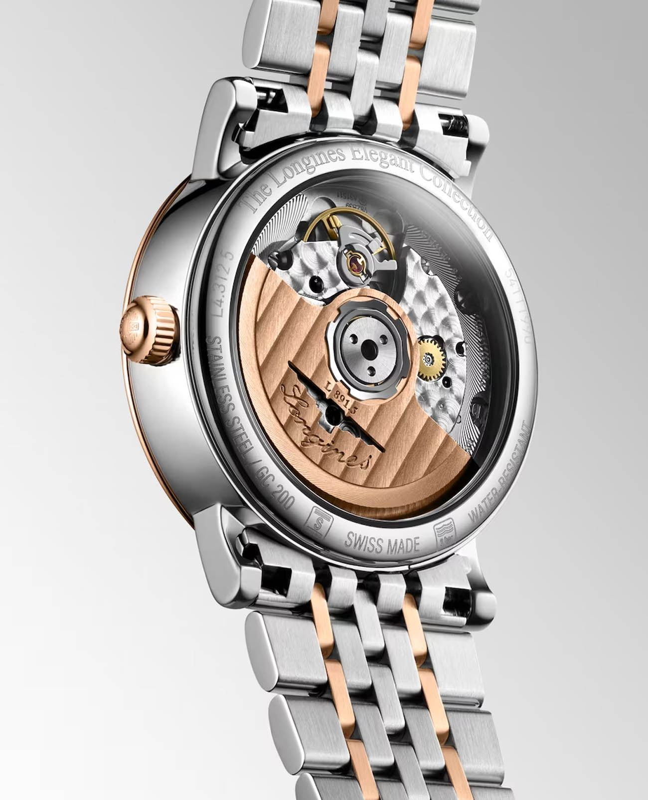 Женские швейцарские механические часы с автоподзаводом Longines Elegant Collection L4.312.5.87.7. Сапфировое стеклоСапфировое стеклоПрочный и надёжный материал из кристалла сапфира синтетического происхождения, характеризующийся особой твёрдостью и устойчивостью к царапинам и повреждениям. устойчивое к появлению царапин, обладающее высокой прозрачностью. Корпус часов изготовлен из нержавеющей стали. БезельБезельВнешний ободок, закрепляющий стекло. В спортивных часах так называется поворотное кольцо с делениями на циферблате, выполняет роль таймера – замеряет отрезки времени на шкале. Неподвижный безель – элемент декора. Однонаправленно вращающийся безель на дайверских часах позволяет фиксировать моменты погружения и выныривания на поверхность. с 18-каратным золотом18-каратное золотоОбозначение по каратной системе пробирования, оно показывает, сколько драгоценного металла содержится в изделии. 18 карат - в составе 75% чистого золота, соответствует 750 пробе.