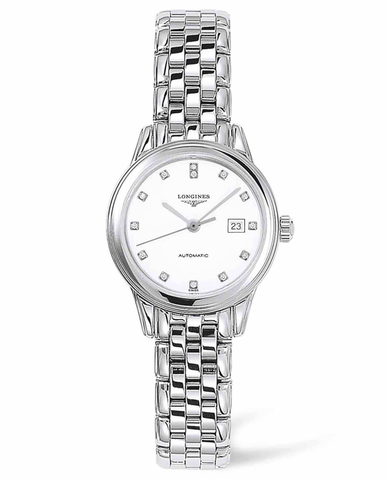Женские швейцарские механические часы Longines Flagship L4.374.4.27.6 – это воплощение элегантности и изысканности. Их корпус из нержавеющей стали 316L, словно драгоценный камень, подчеркивает роскошный блеск 13 бриллиантов, инкрустированных в циферблат. Эти драгоценные камни, общим весом 0,034 карата, придают часам утонченное сияние, достойное королевской особы.Браслет на застёжке «бабочка» с кнопкамиЗастёжка "бабочка"Такой вид застёжки дополняется предохранителями, помогающими избежать случайного раскрытия браслета. Обладают изящным исполнением.  добавляет часам утонченности и удобства.