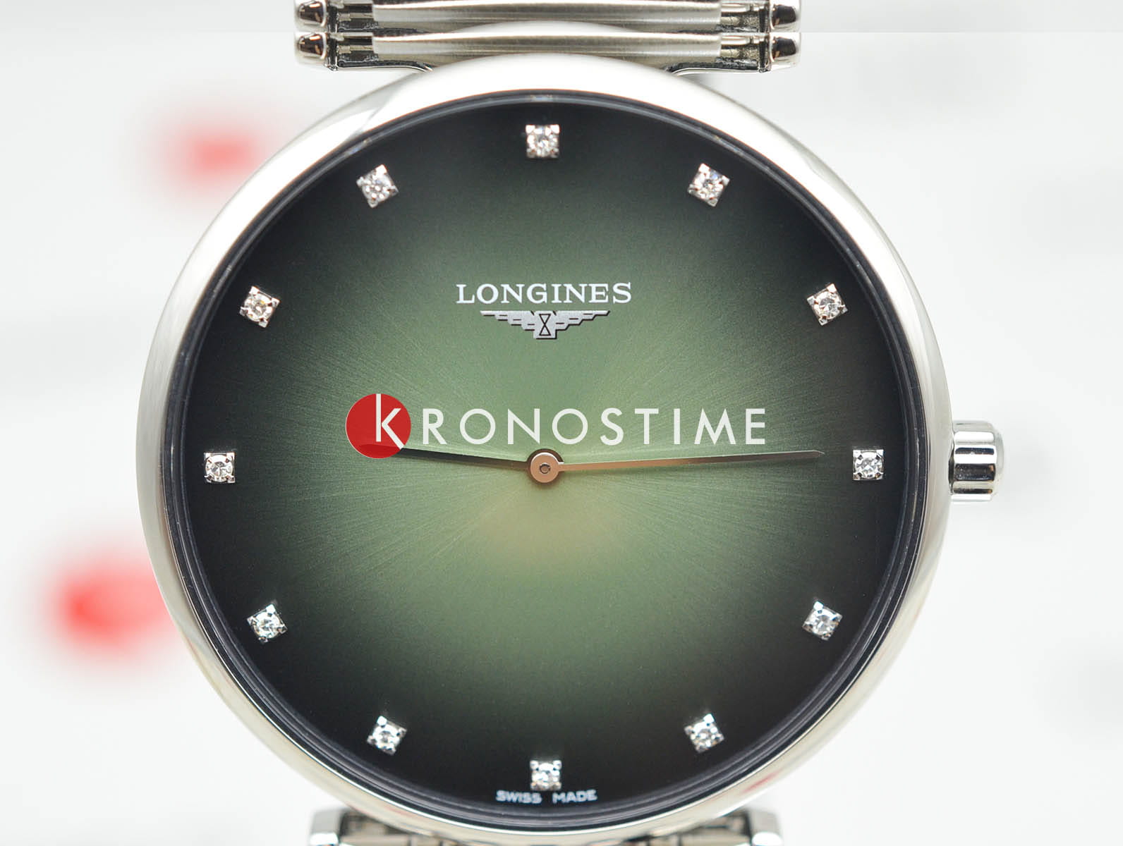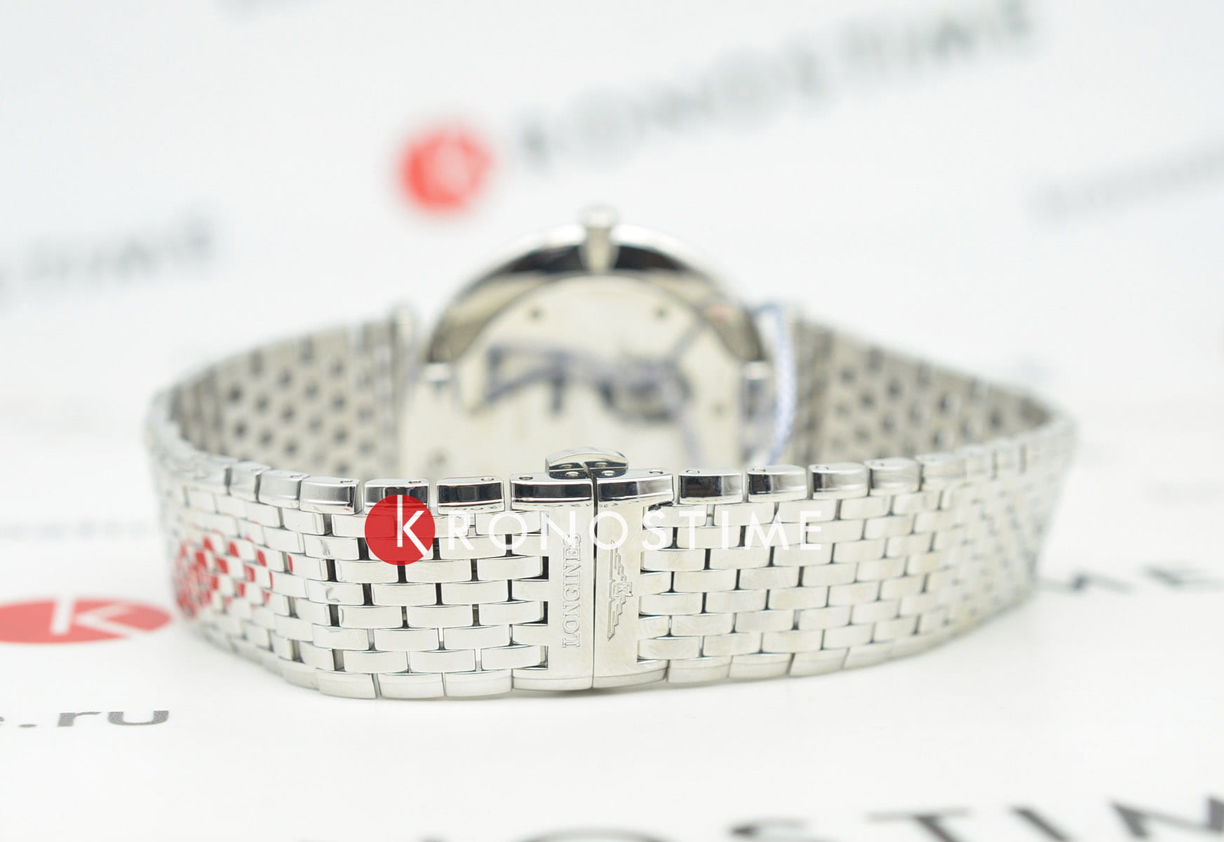 Женские швейцарские часы Longines La Grande Classique L4.866.4.92.6, кварцевый механизм с высокой точностью. Сапфировое стеклоСапфировое стеклоПрочный и надёжный материал из кристалла сапфира синтетического происхождения, характеризующийся особой твёрдостью и устойчивостью к царапинам и повреждениям. устойчивое к появлению царапин, обладающее высокой прозрачностью. Корпус часов изготовлен из стали. Циферблат с 12 бриллиантами группы Top Wesselton VS-SI общим весом 0.081 карата. Класс водозащиты: 30 метров, позволит защитить корпус от случайных брызг или капель дождя. Стальной браслет на застёжке-бабочке с кнопкамиЗастёжка "бабочка"Такой вид застёжки дополняется предохранителями, помогающими избежать случайного раскрытия браслета. Обладают изящным исполнением. .
