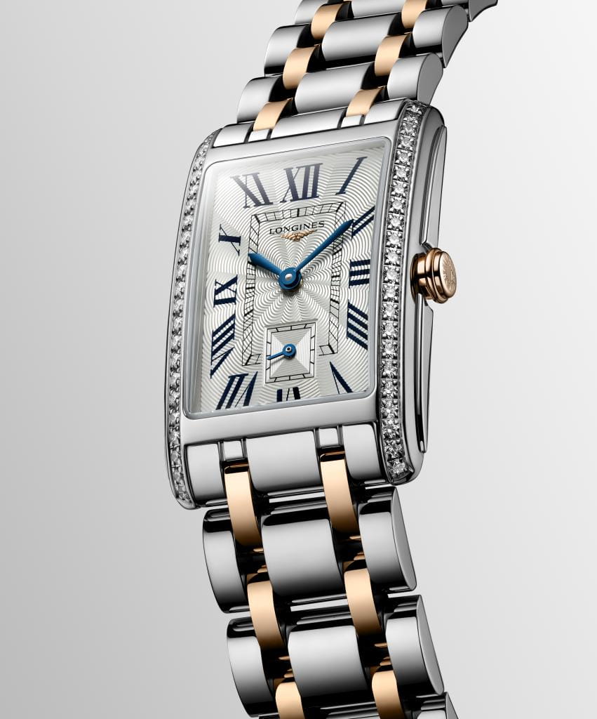 Женские швейцарские часы Longines DolceVita L5.512.5.79.7, кварцевый механизм с высокой точностью. Сапфировое стеклоСапфировое стеклоПрочный и надёжный материал из кристалла сапфира синтетического происхождения, характеризующийся особой твёрдостью и устойчивостью к царапинам и повреждениям. устойчивое к появлению царапин, обладающее высокой прозрачностью. Корпус часов с браслетом из нержавеющей стали с 46 бриллиантами группы Top Wesselton IF-VVS общим весом 0.552 карата. Класс водозащиты: 30 метров, позволит защитить корпус от случайных брызг или капель дождя. Стальной браслет с на застёжке-бабочке с кнопкамиЗастёжка "бабочка"Такой вид застёжки дополняется предохранителями, помогающими избежать случайного раскрытия браслета. Обладают изящным исполнением. .