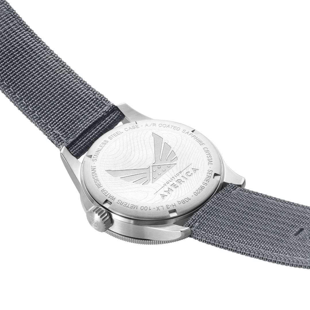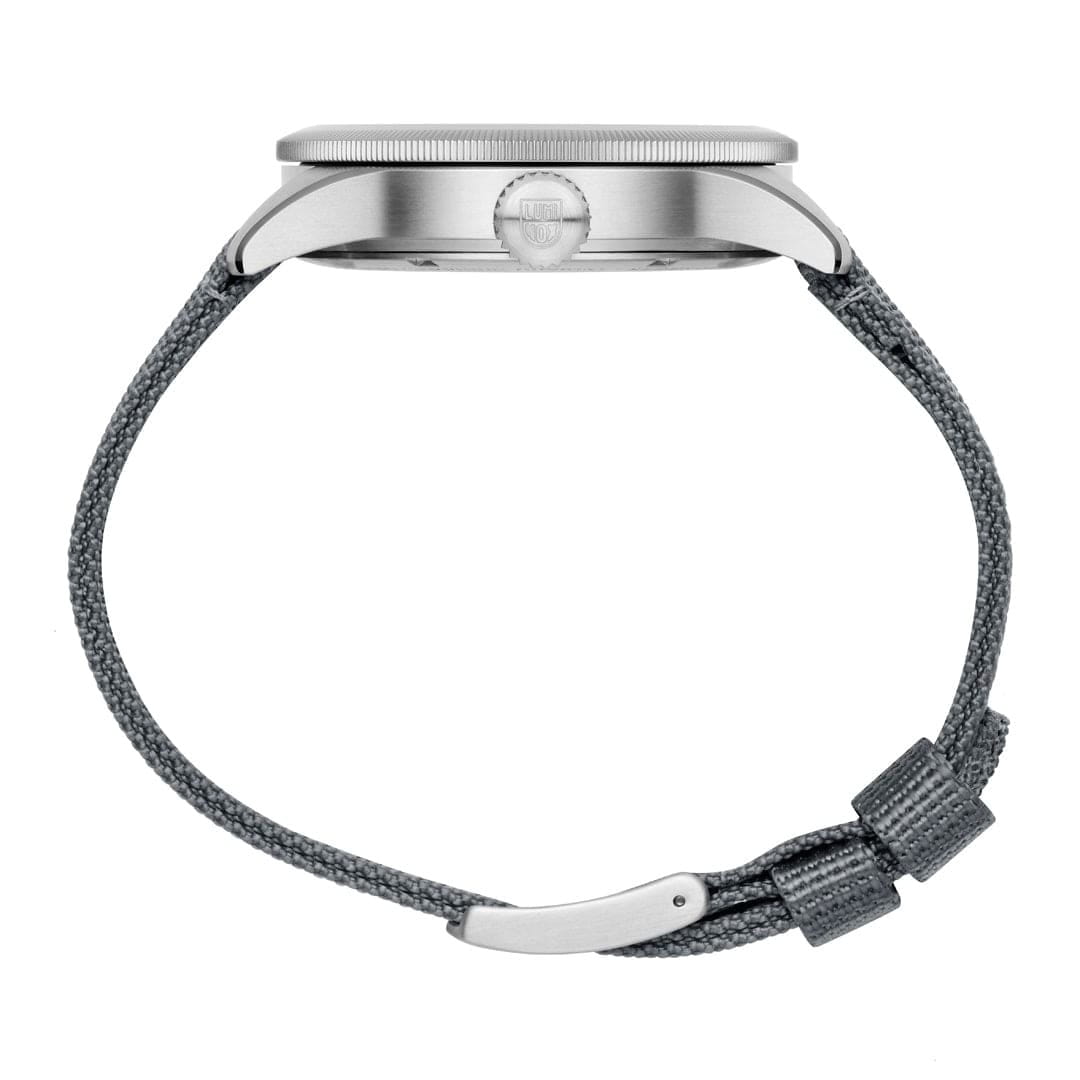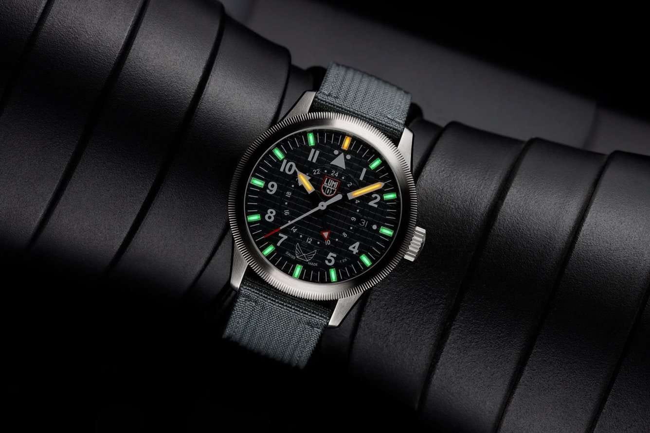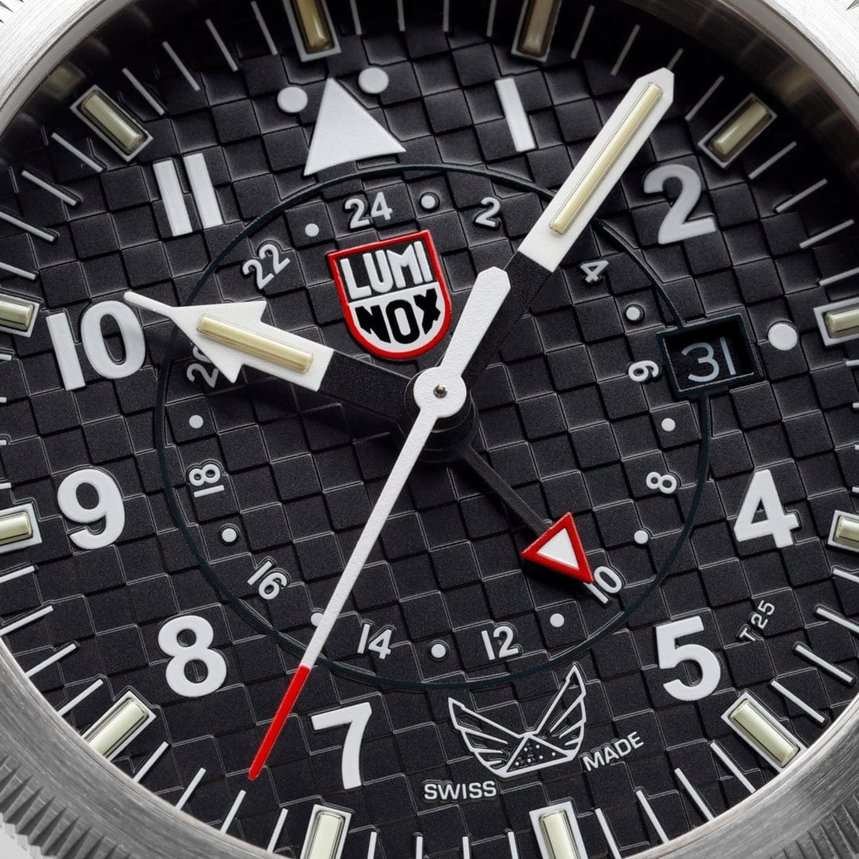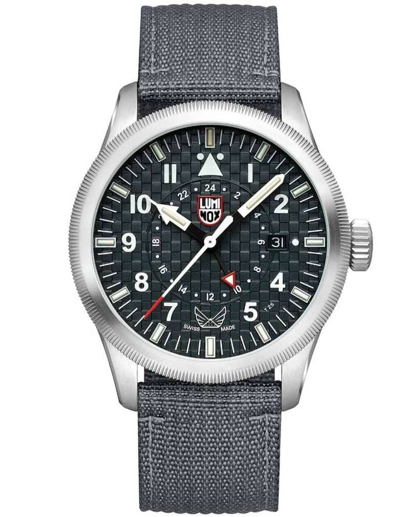 Эти часы Luminox x VOLITION AMERICA Flight Force Pilot Watch XA.9522.VOL это новейшая модель, вдохновленная шлемами, которые носят военнослужащие ВВС США. Они оснащены 42-миллиметровым черным циферблатом, защищенным сапфировым стекломСапфировое стеклоПрочный и надёжный материал из кристалла сапфира синтетического происхождения, характеризующийся особой твёрдостью и устойчивостью к царапинам и повреждениям. с антибликовым покрытиемАнтибликовое покрытиеСлой оксида металла в 0,13-0,3 микрон, благодаря которому стекло часов не бликует и не отражает свет. Антибликовое покрытие уменьшает отражение света в 10 раз, обеспечивая отличную читаемость показателей циферблата., и стильным серым тканевым ремешком с фирменной классической застежкой застежкой Luminox. Часы обладают функцией GMTGMTОтображение времени второго часового пояса.Такая функция особенно актуальна для путешественников и бизнесменов,которые общаются с людьми из разных стран,теперь вы всегда будете знать,какой час у вашего партнёра или близкого человека., что позволяет отслеживать время в двух часовых поясах одновременно, делая их идеальными спутниками для путешественников по всему миру. Дизайн с характерным треугольником и двумя точками под отметкой 12 часов, что обеспечивает быструю ориентацию и легкость считывания времени. Механизм на базе швейцарского кварца RONDA 515.24H обеспечивает работу часов до 50 месяцев без замены батареи, а постоянное свечение циферблата сохраняется до 25 лет благодаря LLTLLTLLT — это автономный механизм подсветки, основанный на использовании микроскопических газонаполненных элементов. Специальные герметичные капсулы из боросиликатного стекла, интегрированные в циферблат, генерируют свечение без необходимости подключения к внешним источникам энергии. Для их работы не требуется ни дополнительный свет, ни механическое воздействие (например, нажатие кнопки). Свечение возникает благодаря химическому процессу: реакция между тритием, заключенным в капсулах, и люминофорным покрытием создает стабильное автономное освещение. Технология обеспечивает энергетическую независимость и долговечность подсветки.-подсветке. Корпус выполнен из нержавеющей стали 316L и выдерживает погружение на глубину до 100 метров. Завинчивающаяся заводная головка и прозрачная задняя крышка из нержавеющей стали добавляют прочности и эстетической привлекательности.