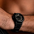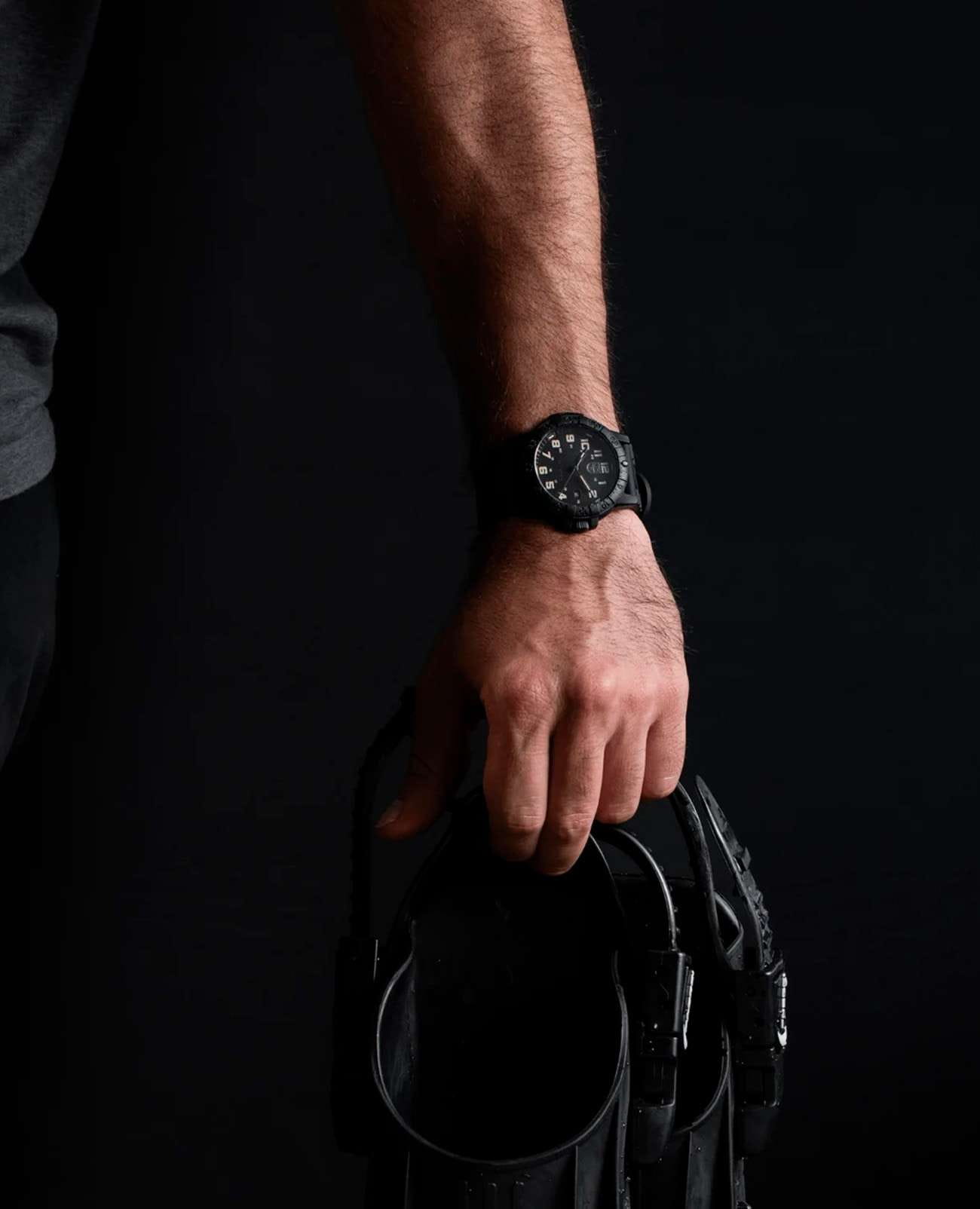 Мужские наручные часы Luminox XS.0330 из коллекции Leatherback SEA Turtle Giant сочетают в себе спортивный дизайн и надежность швейцарского качества. Модель обладает круглым корпусом диаметром 44 мм, изготовленным из карбонаКарбонОт «carbon», «carbone» - углерод, углепластик - полимерный композиционный материал из переплетённых под определенным углом между собой нитей углеродного волокна, применяется для изготовления лёгких, но прочных деталей. В часах часто используют для украшения циферблатов и ремешков. Так же карбон используется в изготовлении корпусов. Такие корпуса обладают антикоррозионным свойством, не поддаются электромагнитному излучению, обладают повышенной прочностью и противоударностью. (CARBONOX™), что обеспечивает высокую устойчивость к внешним воздействиям при сохранении легкости. Циферблат черного цвета украшен контрастными метками и стрелками с , гарантирующим постоянную видимость времени даже в условиях низкой освещенности. Часы оснащены кварцевым механизмом Ronda 515 швейцарского производства, обеспечивающим точность хода ±15 секунд в месяц. Защиту циферблата обеспечивает прочное минеральное стеклоМинеральное стеклоМинеральное стекло представляет собой искусственно выращенный минерал кварца. Такое стекло отличается особой устойчивостью к повреждениям и царапинам. Уступает по некоторым качествам сапфировому стеклу., устойчивое к царапинам и механическим повреждениям. Водонепроницаемость модели достигает 10 атмосфер (100 метров), что делает их подходящими для плавания и активного отдыха на воде. Модель также оснащена безелемБезельВнешний ободок, закрепляющий стекло. В спортивных часах так называется поворотное кольцо с делениями на циферблате, выполняет роль таймера – замеряет отрезки времени на шкале. Неподвижный безель – элемент декора. Однонаправленно вращающийся безель на дайверских часах позволяет фиксировать моменты погружения и выныривания на поверхность. с односторонним вращением, что добавляет функциональности при использовании в водных условиях . Ремешок выполнен из черного каучука, что обеспечивает комфортное ношение в течение дня. Дополнительно часы имеют окно даты в положении «3 часа», что делает их практичными для повседневного использования.