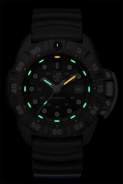 Часы Luminox XS.1553 представляют собой сочетание швейцарского качества и современных технологий, создавая надежный аксессуар для любителей активного образа жизни и дайвинга. В их основе лежит кварцевый механизм, обеспечивающий точность и долговечность. Корпус часов выполнен из прочного пластика, усиленного прессованным карбономКарбонОт «carbon», «carbone» - углерод, углепластик - полимерный композиционный материал из переплетённых под определенным углом между собой нитей углеродного волокна, применяется для изготовления лёгких, но прочных деталей. В часах часто используют для украшения циферблатов и ремешков. Так же карбон используется в изготовлении корпусов. Такие корпуса обладают антикоррозионным свойством, не поддаются электромагнитному излучению, обладают повышенной прочностью и противоударностью., что делает их легкими и устойчивыми к повреждениям. Эти часы обладают синим циферблатом и надежным каучуковым ремешком такого же цвета с классической застежкой, обеспечивающим комфортное ношение в любых условиях. Водозащита до 300 метров позволяет использовать часы при погружениях на значительные глубины, а LLTLLTLLT — это автономный механизм подсветки, основанный на использовании микроскопических газонаполненных элементов. Специальные герметичные капсулы из боросиликатного стекла, интегрированные в циферблат, генерируют свечение без необходимости подключения к внешним источникам энергии. Для их работы не требуется ни дополнительный свет, ни механическое воздействие (например, нажатие кнопки). Свечение возникает благодаря химическому процессу: реакция между тритием, заключенным в капсулах, и люминофорным покрытием создает стабильное автономное освещение. Технология обеспечивает энергетическую независимость и долговечность подсветки.-подсветка гарантирует отличную видимость в темноте. Сапфировое стеклоСапфировое стеклоПрочный и надёжный материал из кристалла сапфира синтетического происхождения, характеризующийся особой твёрдостью и устойчивостью к царапинам и повреждениям. с антибликовым покрытиемАнтибликовое покрытиеСлой оксида металла в 0,13-0,3 микрон, благодаря которому стекло часов не бликует и не отражает свет. Антибликовое покрытие уменьшает отражение света в 10 раз, обеспечивая отличную читаемость показателей циферблата. защищает циферблат от царапин и уменьшает отражения, обеспечивая легкость считывания информации. Функция календаря с указанием числа добавляет практичности, а 12- и 24-часовой формат времени позволяет выбрать наиболее удобное отображение. Завинчивающаяся заводная головка с защитой и стальная задняя крышка обеспечивают дополнительную герметичность и прочность конструкции. Вращающийся в одном направлении безельБезельВнешний ободок, закрепляющий стекло. В спортивных часах так называется поворотное кольцо с делениями на циферблате, выполняет роль таймера – замеряет отрезки времени на шкале. Неподвижный безель – элемент декора. Однонаправленно вращающийся безель на дайверских часах позволяет фиксировать моменты погружения и выныривания на поверхность. помогает отслеживать время погружения, что делает эти часы идеальными для дайверов. Габариты часов составляют 45 мм в диаметре и 15 мм в толщину, при весе всего 91 г, что делает их удобными для повседневного использования и при з