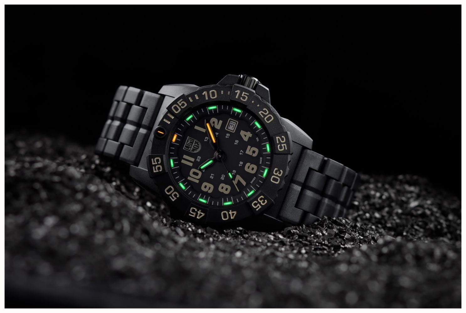 Мужские наручные часы Luminox XS.3510 из коллекции Navy SEAL сочетают в себе спортивный дизайн и надежность швейцарского качества . Модель обладает круглым корпусом диаметром 45 мм, изготовленным из карбонаКарбонОт «carbon», «carbone» - углерод, углепластик - полимерный композиционный материал из переплетённых под определенным углом между собой нитей углеродного волокна, применяется для изготовления лёгких, но прочных деталей. В часах часто используют для украшения циферблатов и ремешков. Так же карбон используется в изготовлении корпусов. Такие корпуса обладают антикоррозионным свойством, не поддаются электромагнитному излучению, обладают повышенной прочностью и противоударностью. (CARBONOX™), что обеспечивает высокую устойчивость к внешним воздействиям при сохранении легкости . Циферблат черного цвета украшен контрастными метками и стрелками с люминесцентным покрытиемЛюминесцентное покрытиеПозволяет считывать показания времени в темноте. Производители наносят на стрелки, часовые индексы, безель или поверхность циферблата светонакопительный состав, дающий холодное свечение., гарантирующим постоянную видимость времени даже в условиях низкой освещенности благодаря системе LLTLLTLLT — это автономный механизм подсветки, основанный на использовании микроскопических газонаполненных элементов. Специальные герметичные капсулы из боросиликатного стекла, интегрированные в циферблат, генерируют свечение без необходимости подключения к внешним источникам энергии. Для их работы не требуется ни дополнительный свет, ни механическое воздействие (например, нажатие кнопки). Свечение возникает благодаря химическому процессу: реакция между тритием, заключенным в капсулах, и люминофорным покрытием создает стабильное автономное освещение. Технология обеспечивает энергетическую независимость и долговечность подсветки. (микрогазовые огни) . Часы оснащены кварцевым механизмом швейцарского производства Ronda 715, обеспечивающим точность хода ±15 секунд в месяц . Защиту циферблата обеспечивает прочное минеральное стеклоМинеральное стеклоМинеральное стекло представляет собой искусственно выращенный минерал кварца. Такое стекло отличается особой устойчивостью к повреждениям и царапинам. Уступает по некоторым качествам сапфировому стеклу. с антибликовым покрытиемАнтибликовое покрытиеСлой оксида металла в 0,13-0,3 микрон, благодаря которому стекло часов не бликует и не отражает свет. Антибликовое покрытие уменьшает отражение света в 10 раз, обеспечивая отличную читаемость показателей циферблата., устойчивое к царапинам и механическим повреждениям . Водонепроницаемость модели достигает 20 атмосфер (200 метров), что делает их подходящими для плавания и активного отдыха на воде, включая дайвинг . Модель также оснащена безелемБезельВнешний ободок, закрепляющий стекло. В спортивных часах так называется поворотное кольцо с делениями на циферблате, выполняет роль таймера – замеряет отрезки времени на шкале. Неподвижный безель – элемент декора. Однонаправленно вращающийся безель на дайверских часах позволяет фиксировать моменты погружения и выныривания на поверхность. с односторонним вращением, что добавляет функциональности при использовании в водных условиях . Ремешок выполнен из черного полиуретана, что обеспечивает комфортное ношение в т