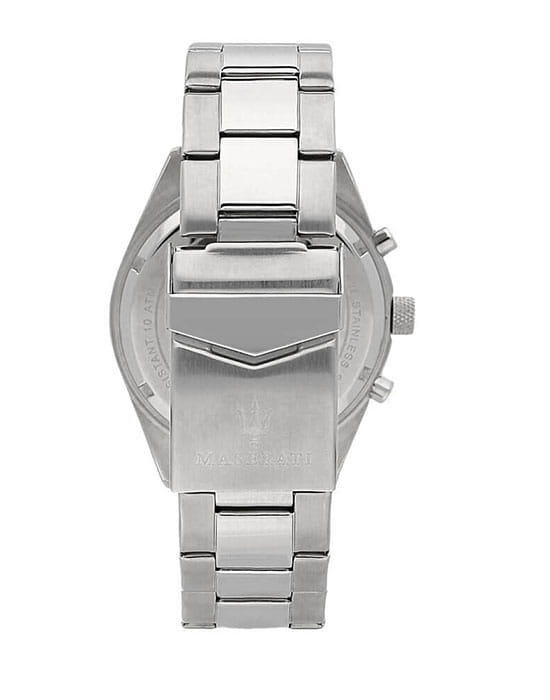 Мужские часы с хронографом Maserati COMPETIZIONE R8853100018, кварцевый механизм с высокой точностью. Класс водозащиты: 100 метров, позволит плавать, нырять и заниматься другими водными видами спорта. Корпус часов изготовлен из стали, цвета.