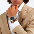 Мужские часы Maserati R8873600001 — это стильное сочетание элегантности и современного дизайна. Корпус из нержавеющей стали с диаметром 43 мм идеально сбалансирован и элегантен. Минеральное стеклоМинеральное стеклоМинеральное стекло представляет собой искусственно выращенный минерал кварца. Такое стекло отличается особой устойчивостью к повреждениям и царапинам. Уступает по некоторым качествам сапфировому стеклу. защищает циферблат от царапин. Стальной браслет на застёжке-бабочке с кнопкамиЗастёжка "бабочка"Такой вид застёжки дополняется предохранителями, помогающими избежать случайного раскрытия браслета. Обладают изящным исполнением. идеально дополняют дизайн часов, обеспечивая комфортное ношение. Стрелки и метки с люминесцентным покрытиемЛюминесцентное покрытиеПозволяет считывать показания времени в темноте. Производители наносят на стрелки, часовые индексы, безель или поверхность циферблата светонакопительный состав, дающий холодное свечение.. Керамический безельБезельВнешний ободок, закрепляющий стекло. В спортивных часах так называется поворотное кольцо с делениями на циферблате, выполняет роль таймера – замеряет отрезки времени на шкале. Неподвижный безель – элемент декора. Однонаправленно вращающийся безель на дайверских часах позволяет фиксировать моменты погружения и выныривания на поверхность.. Часы обладают впечатляющей водонепроницаемостью до 10 бар (100 метров), что делает их идеальными для повседневной носки. Метки в виде штрихов. Окошко даты с увеличительным стеклом находится в положении 3 часа. Данная модель идёт в комплекте с мужским браслетом из гипоаллергенной нержавеющей стали с PVD-покрытиемPVDУльтратонкое покрытие наносится в технике вакуумного напыления, сочетает в себе нитрид титана особой прочности со слоем золота или оксида хрома. Несёт в себе декоративную или защитную функцию. чёрного цвета и цвета розового золота.