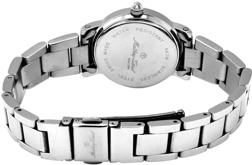 Женские кварцевые часы Mathey-Tissot City Metal D31186MABR — это стильное сочетание элегантности и современного дизайна. Изящный корпус выполнен из нержавеющей стали 316L серебристого цвета, что придаст образу женственности и романтизма. Изысканный циферблат с метками в виде римских цифр придает модели особый блеск. Циферблат защищен минеральным стекломМинеральное стеклоМинеральное стекло представляет собой искусственно выращенный минерал кварца. Такое стекло отличается особой устойчивостью к повреждениям и царапинам. Уступает по некоторым качествам сапфировому стеклу. с сапфировым покрытием, обеспечивающий устойчивость к царапинам. Окошко даты находится в положении 3 часа. Часы оснащены надежным кварцевым механизмом. Стальной браслет на раскладной застёжкеРаскладная застёжкаТакой тип застёжки используется только на браслетах из металла. Она никогда не раскрывается полностью, происходит разделение на 2 и более частей. Раскладывающая застёжка снизит вероятность потери часов к минимуму., гарантирует комфортное и безопасное ношение. Класс водозащиты: 30 метров позволит защитить корпус от случайных брызг или капель дождя. Mathey-Tissot  — отличный выбор для тех, кто ценит утонченность и качество.