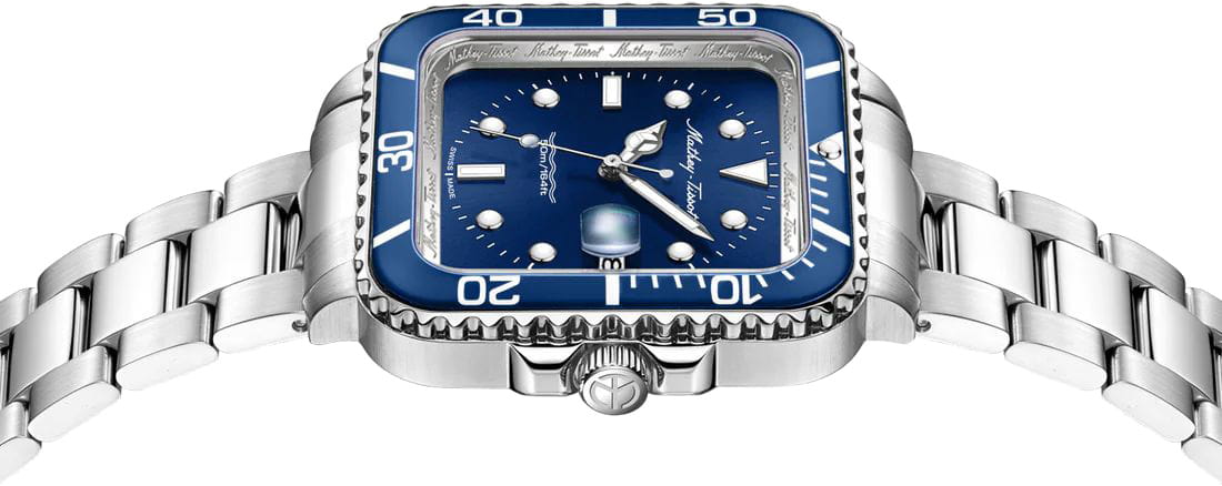 Мужские кварцевые часы Mathey-Tissot Mathy H902QABU — это стильное сочетание элегантности и современного дизайна. Изящный корпус выполнен из нержавеющей стали, диаметром 42 мм, что придаст образу элегантности и надежности. Изысканный циферблат с метками в виде точек придает модели особый блеск. Циферблат защищен сапфировым стекломСапфировое стеклоПрочный и надёжный материал из кристалла сапфира синтетического происхождения, характеризующийся особой твёрдостью и устойчивостью к царапинам и повреждениям., обеспечивает устойчивость к царапинам. Стрелки и метки с люминесцентным покрытиемЛюминесцентное покрытиеПозволяет считывать показания времени в темноте. Производители наносят на стрелки, часовые индексы, безель или поверхность циферблата светонакопительный состав, дающий холодное свечение. SuperLumiNova, которое светится в темноте после непродолжительной зарядки на свету. БезельБезельВнешний ободок, закрепляющий стекло. В спортивных часах так называется поворотное кольцо с делениями на циферблате, выполняет роль таймера – замеряет отрезки времени на шкале. Неподвижный безель – элемент декора. Однонаправленно вращающийся безель на дайверских часах позволяет фиксировать моменты погружения и выныривания на поверхность. с PVD-покрытиемPVDУльтратонкое покрытие наносится в технике вакуумного напыления, сочетает в себе нитрид титана особой прочности со слоем золота или оксида хрома. Несёт в себе декоративную или защитную функцию. синего цвета. Окошко даты находится в положении 3 часа. Стальной браслет на раскладной застёжке с фиксаторомРаскладная застёжкаТакой тип застёжки используется только на браслетах из металла. Она никогда не раскрывается полностью, происходит разделение на 2 и более частей. Раскладывающая застёжка снизит вероятность потери часов к минимуму., гарантирует комфортное и безопасное ношение. Рифленая заводная головка. Класс водозащиты: 50 метров позволит защитить корпус от случайных брызг или капель дождя. Mathey-Tissot — отличный выбор для тех, кто ценит утонченность и качество.