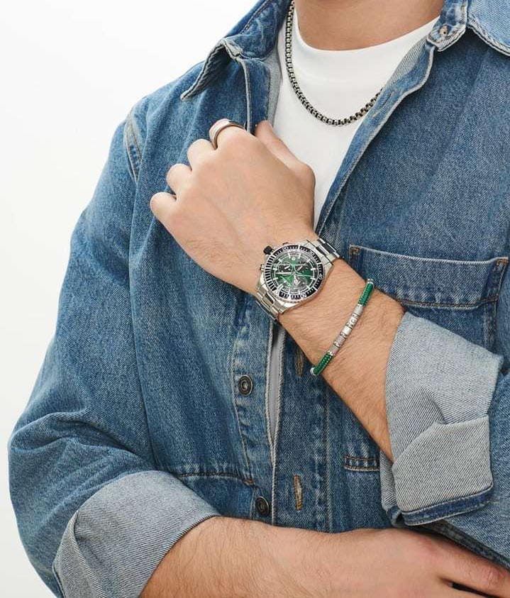 Мужские кварцевые часы-хронографХронографФункция позволяет измерять отрезки времени с особой точностью: часы, минуты, секунды. Верным признаком хронографа является наличие на циферблате 3 дополнительных окошек-счётчиков. с секундомеромСекундомерСекундоме́р — прибор, способный измерять интервалы времени с точностью до долей секунды. Mathey-Tissot Mathy H908CHAV — это стильное сочетание элегантности и современного дизайна. Изящный корпус выполнен из нержавеющей стали, диаметром 42 мм, что придаст образу элегантности и надежности. Изысканный циферблат с метками в виде штрихов придает модели особый блеск. Циферблат защищен минеральным стекломМинеральное стеклоМинеральное стекло представляет собой искусственно выращенный минерал кварца. Такое стекло отличается особой устойчивостью к повреждениям и царапинам. Уступает по некоторым качествам сапфировому стеклу. с сапфировым покрытием, обеспечивает устойчивость к царапинам. Стрелки и метки с люминесцентным покрытиемЛюминесцентное покрытиеПозволяет считывать показания времени в темноте. Производители наносят на стрелки, часовые индексы, безель или поверхность циферблата светонакопительный состав, дающий холодное свечение.. БезельБезельВнешний ободок, закрепляющий стекло. В спортивных часах так называется поворотное кольцо с делениями на циферблате, выполняет роль таймера – замеряет отрезки времени на шкале. Неподвижный безель – элемент декора. Однонаправленно вращающийся безель на дайверских часах позволяет фиксировать моменты погружения и выныривания на поверхность. с PVD-покрытиемPVDУльтратонкое покрытие наносится в технике вакуумного напыления, сочетает в себе нитрид титана особой прочности со слоем золота или оксида хрома. Несёт в себе декоративную или защитную функцию.. Окошко даты находится в положении между 4 и 5 часов. Стальной браслет на раскладной застёжке с фиксаторомРаскладная застёжкаТакой тип застёжки используется только на браслетах из металла. Она никогда не раскрывается полностью, происходит разделение на 2 и более частей. Раскладывающая застёжка снизит вероятность потери часов к минимуму., гарантирует комфортное и безопасное ношение. Рифленая заводная головка. Класс водозащиты: 100 метров позволит плавать, нырять и заниматься другими водными видами спорта. Mathey-Tissot  — отличный выбор для тех, кто ценит утонченность и качество.