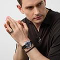 Мужские кварцевые часы Mathey-Tissot Mergulhador GMTGMTОтображение времени второго часового пояса.Такая функция особенно актуальна для путешественников и бизнесменов,которые общаются с людьми из разных стран,теперь вы всегда будете знать,какой час у вашего партнёра или близкого человека. MRGAN — это стильное сочетание элегантности и современного дизайна. Изящный корпус выполнен из нержавеющей стали, диаметром 41 мм, что придаст образу элегантности и надежности. Циферблат с метками в виде штрихов придает модели особый блеск. Циферблат защищен минеральным стекломМинеральное стеклоМинеральное стекло представляет собой искусственно выращенный минерал кварца. Такое стекло отличается особой устойчивостью к повреждениям и царапинам. Уступает по некоторым качествам сапфировому стеклу. с сапфировым покрытием, обеспечивает устойчивость к царапинам. Второй часовой поясВторой часовой поясФункция, позволяющая отображать время двух часовых поясов одновременно. в 24-х часовом формате времени отображается центральной стрелкой. Стрелки и метки с люминесцентным покрытиемЛюминесцентное покрытиеПозволяет считывать показания времени в темноте. Производители наносят на стрелки, часовые индексы, безель или поверхность циферблата светонакопительный состав, дающий холодное свечение. SuperLumiNova, которое светится в темноте после непродолжительной зарядки на свету. Окошко даты находится в положении 6 часов. Рифленый безельБезельВнешний ободок, закрепляющий стекло. В спортивных часах так называется поворотное кольцо с делениями на циферблате, выполняет роль таймера – замеряет отрезки времени на шкале. Неподвижный безель – элемент декора. Однонаправленно вращающийся безель на дайверских часах позволяет фиксировать моменты погружения и выныривания на поверхность. с минутными отметками вращается в одном направлении. Часы оснащены надежным кварцевым механизмом. Кожаный ремешок на стандартной застёжке гарантирует комфортное и безопасное ношение. Класс водозащиты: 200 метров позволит плавать, нырять и заниматься другими водными видами спорта. Mathey-Tissot — отличный выбор для тех, кто ценит утонченность и качество.
