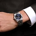 Мужские швейцарские кварцевые часы Maurice Lacroix Aikon Quartz AI1108-SS002-430-1. Сапфировое стеклоСапфировое стеклоПрочный и надёжный материал из кристалла сапфира синтетического происхождения, характеризующийся особой твёрдостью и устойчивостью к царапинам и повреждениям. устойчивое к появлению царапин, обладающее высокой прозрачностью. Синий циферблат. Стрелки с люминесцентным покрытиемЛюминесцентное покрытиеПозволяет считывать показания времени в темноте. Производители наносят на стрелки, часовые индексы, безель или поверхность циферблата светонакопительный состав, дающий холодное свечение.. Класс водозащиты: 100 метров, позволит плавать, нырять и заниматься другими водными видами спорта. Окошко даты находится в положении 3 часов. Корпус и браслет часов изготовлены из стали. Браслет с застёжкой «бабочка» с кнопкамиЗастёжка "бабочка"Такой вид застёжки дополняется предохранителями, помогающими избежать случайного раскрытия браслета. Обладают изящным исполнением. .
