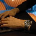 Механический механизм (автоматический калибр) с высокой точностью. Сапфировое стеклоСапфировое стеклоПрочный и надёжный материал из кристалла сапфира синтетического происхождения, характеризующийся особой твёрдостью и устойчивостью к царапинам и повреждениям. устойчивое к появлению царапин, обладающее высокой прозрачностью. Стрелки с люминесцентным покрытиемЛюминесцентное покрытиеПозволяет считывать показания времени в темноте. Производители наносят на стрелки, часовые индексы, безель или поверхность циферблата светонакопительный состав, дающий холодное свечение.. Поворотный безельБезельВнешний ободок, закрепляющий стекло. В спортивных часах так называется поворотное кольцо с делениями на циферблате, выполняет роль таймера – замеряет отрезки времени на шкале. Неподвижный безель – элемент декора. Однонаправленно вращающийся безель на дайверских часах позволяет фиксировать моменты погружения и выныривания на поверхность.. Класс водозащиты: 100 метров, позволит плавать, нырять и заниматься другими водными видами спорта. Корпус часов изготовлен из нержавеющей стали. Каучуковый ремешок с классической застежкой.