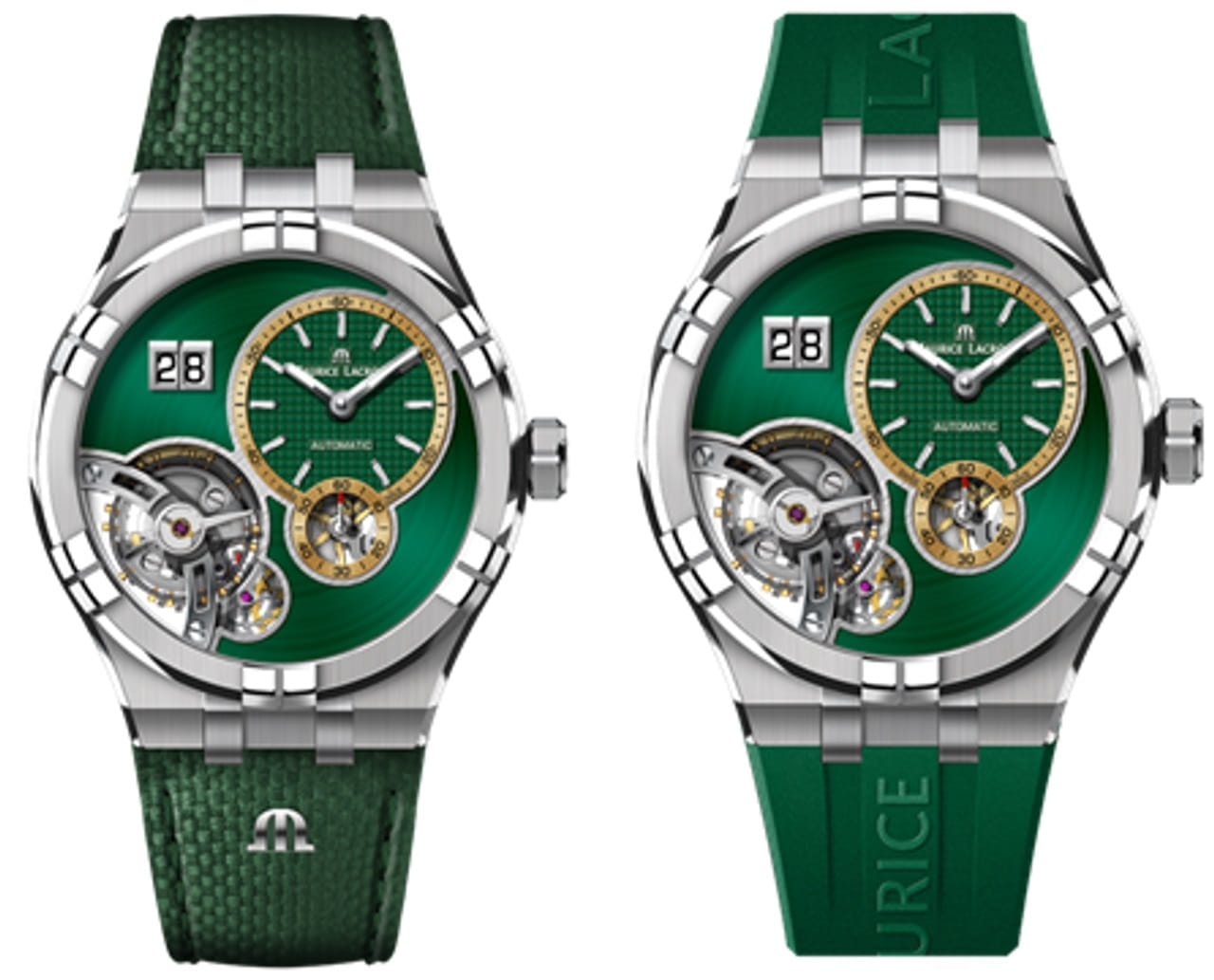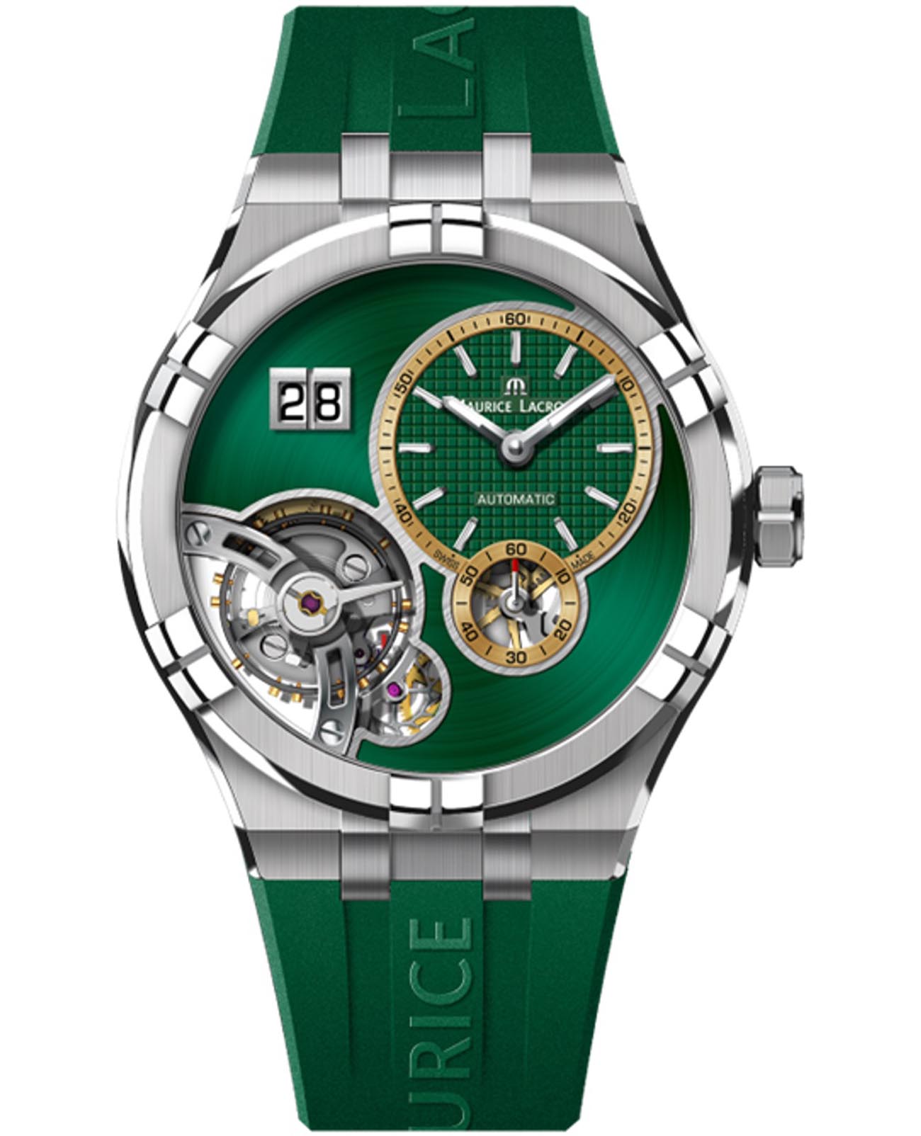 Ограниченная серия из 5 экземпляров, Maurice Lacroix AI6118-SS00B-630-5 представляет свою последнюю коллаборацию с Arizona Fine Time — красивые часы Aikon Grand Date зеленого цвета с золотыми акцентами. Это произведение доступно исключительно в Arizona Fine Time. Мужские часы AI6098-SS002-090-1 с хронографомХронографФункция позволяет измерять отрезки времени с особой точностью: часы, минуты, секунды. Верным признаком хронографа является наличие на циферблате 3 дополнительных окошек-счётчиков.. Автоматический механизм с высокой точностью. Сапфировое стеклоСапфировое стеклоПрочный и надёжный материал из кристалла сапфира синтетического происхождения, характеризующийся особой твёрдостью и устойчивостью к царапинам и повреждениям. устойчивое к появлению царапин, обладающее высокой прозрачностью. Стрелки с люминесцентным покрытиемЛюминесцентное покрытиеПозволяет считывать показания времени в темноте. Производители наносят на стрелки, часовые индексы, безель или поверхность циферблата светонакопительный состав, дающий холодное свечение.. Класс водозащиты: 100 метров, позволит плавать, нырять и заниматься другими водными видами спорта. Корпус часов изготовлен из стали. Силиконовый ремешок на стандартной застёжке.В комплекте 2 ремешка.