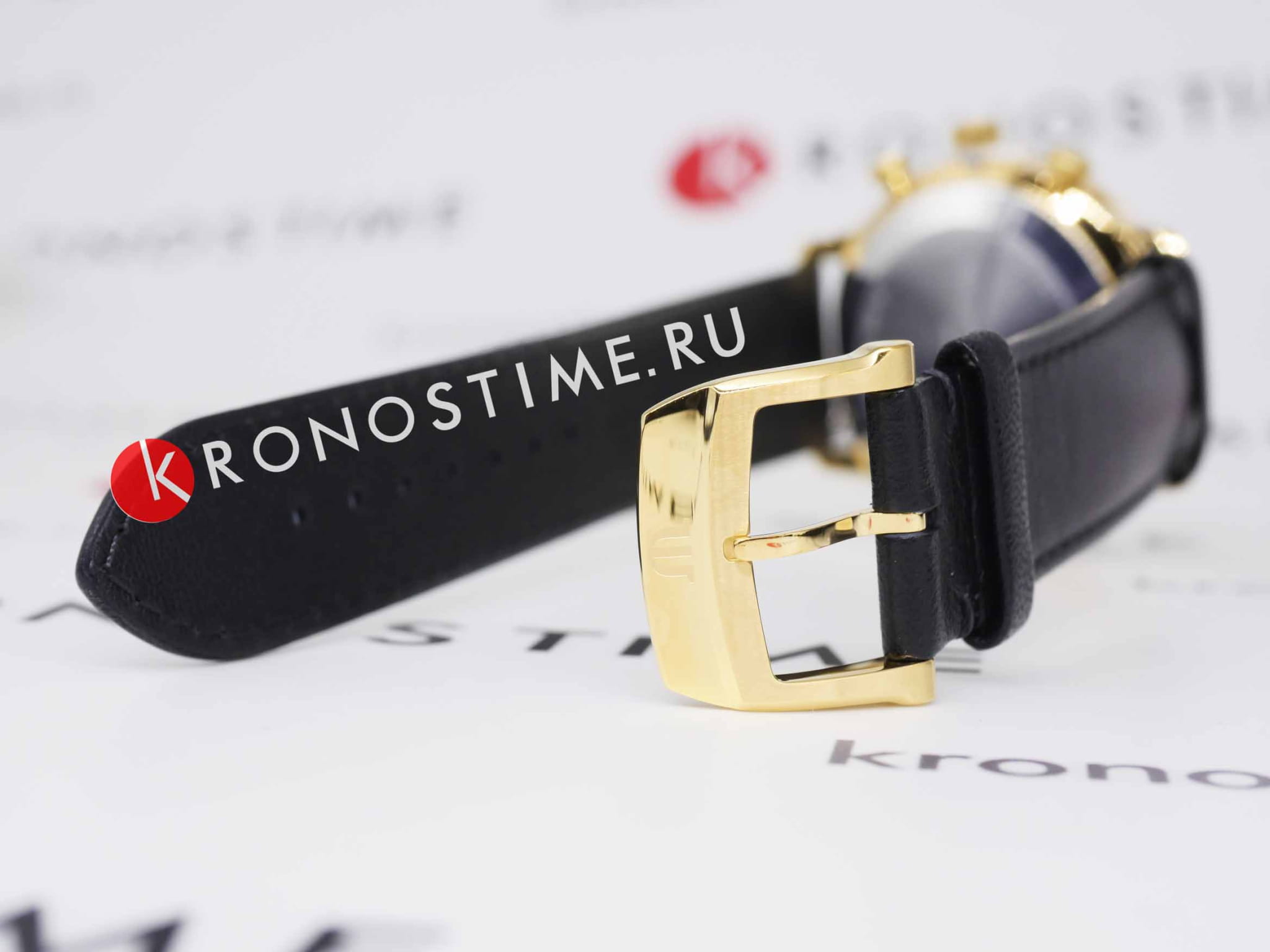 Часы-хронографХронографФункция позволяет измерять отрезки времени с особой точностью: часы, минуты, секунды. Верным признаком хронографа является наличие на циферблате 3 дополнительных окошек-счётчиков.. Кварцевый механизм с высокой точностью. Сапфировое стеклоСапфировое стеклоПрочный и надёжный материал из кристалла сапфира синтетического происхождения, характеризующийся особой твёрдостью и устойчивостью к царапинам и повреждениям. устойчивое к появлению царапин, обладающее высокой прозрачностью. Класс водозащиты: 50 метров, позволит защитить корпус от случайных брызг или капель дождя. Корпус часов изготовлен из нержавеющей стали с PVD-покрытиемPVDУльтратонкое покрытие наносится в технике вакуумного напыления, сочетает в себе нитрид титана особой прочности со слоем золота или оксида хрома. Несёт в себе декоративную или защитную функцию.. Кожаный ремешок.