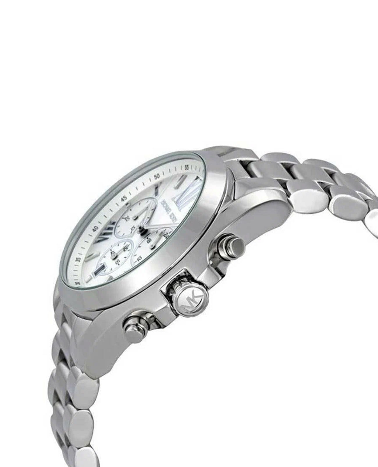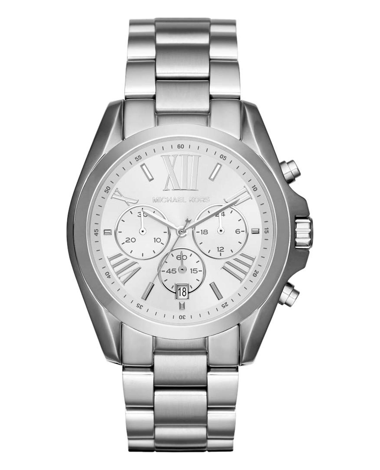 Женские американские часы-хронографХронографФункция позволяет измерять отрезки времени с особой точностью: часы, минуты, секунды. Верным признаком хронографа является наличие на циферблате 3 дополнительных окошек-счётчиков. с секундомеромСекундомерСекундоме́р — прибор, способный измерять интервалы времени с точностью до долей секунды. и с минеральным стекломМинеральное стеклоМинеральное стекло представляет собой искусственно выращенный минерал кварца. Такое стекло отличается особой устойчивостью к повреждениям и царапинам. Уступает по некоторым качествам сапфировому стеклу. Michael Kors Lexington MK5535, кварцевый механизм с высокой точностью. Корпус часов изготовлен из нержавеющей стали. Три дополнительных индикатора на циферблате. 12-ти и 24-х часовой формат. Окошко даты находится в положении 6 часов. Класс водозащиты: 100 метров, позволит плавать, нырять и заниматься другими водными видами спорта. Стальной браслет из нержавеющей стали на раскладной застёжкеРаскладная застёжкаТакой тип застёжки используется только на браслетах из металла. Она никогда не раскрывается полностью, происходит разделение на 2 и более частей. Раскладывающая застёжка снизит вероятность потери часов к минимуму..