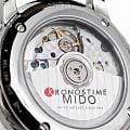 Модель оснащена автоматическим механизмом Mido Caliber 72 с запасом хода до 72 часов, что гарантирует точность и надёжность. Окно даты на отметке 3 часов добавляет удобства в повседневной жизни.