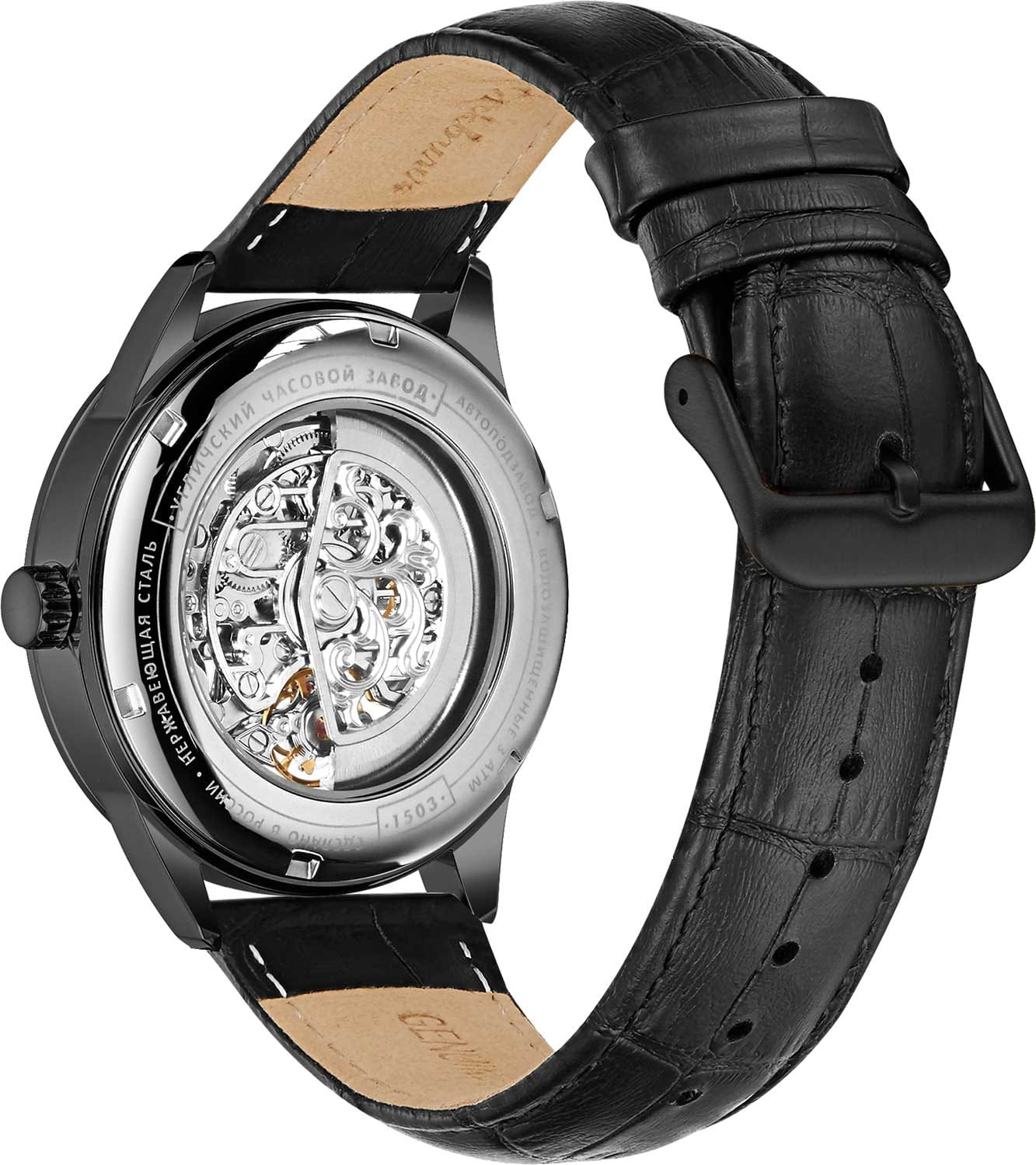 Мужские часы «Михаил Москвин» 1503L-6, механика с автоподзаводом. Корпус 43 мм из нержавеющей стали с чёрным IP-покрытиемIP-покрытиеМетод ионного напыления. Демонстрирует повышенную устойчивость к истиранию, окислению и химическим веществам. Под воздействием высокого давления и температуры около 1500°C молекулы металла надёжно соединяются с частицами корпуса часов.. Скелетонизированный циферблат чёрно-серебристого цвета открывает работу механизма. Механизм имеет, автоподзавод, запас хода до 35 часов. Метки — штрихи, центральные стрелки. Стекло — минеральноеМинеральное стеклоМинеральное стекло представляет собой искусственно выращенный минерал кварца. Такое стекло отличается особой устойчивостью к повреждениям и царапинам. Уступает по некоторым качествам сапфировому стеклу., задняя крышка с полноразмерным смотровым окном. Ремешок из чёрной кожи 22 мм, длина до 210 мм, стандартная застёжка. Водозащита WR30 — защита от брызг. Механика, открытый циферблат и лаконичный дизайн — для ценителей функциональной эстетики без излишеств.