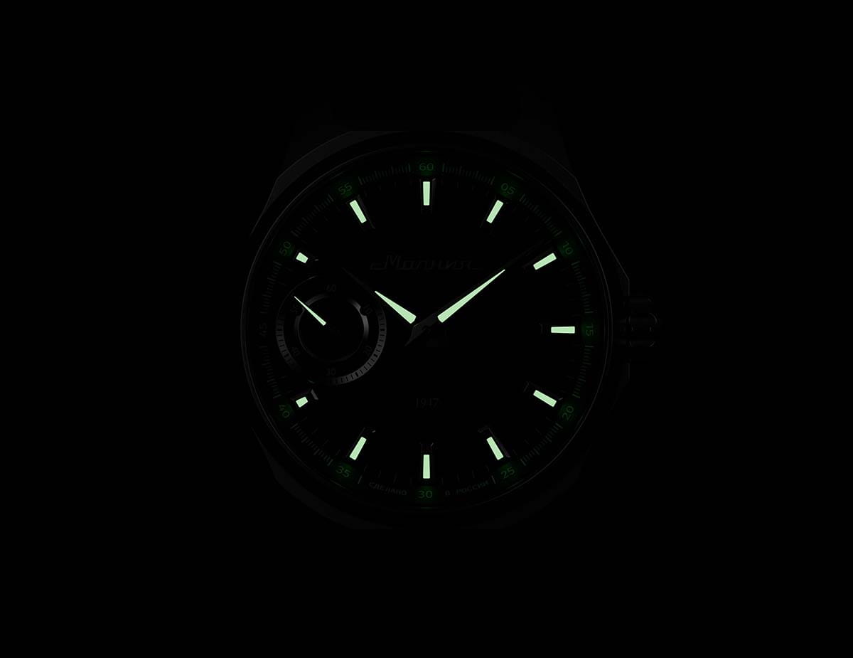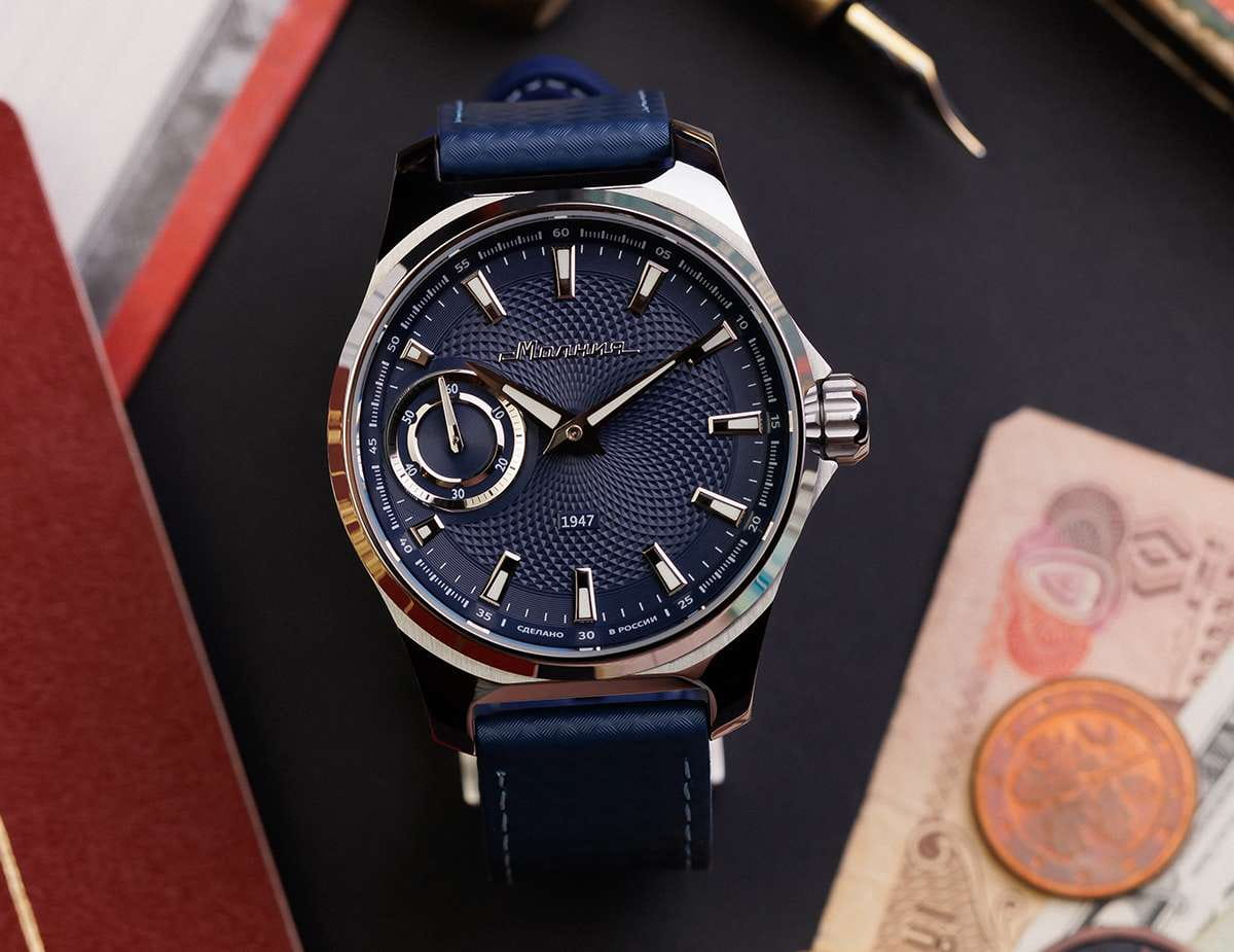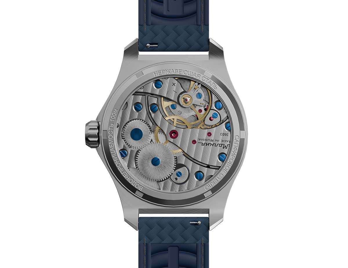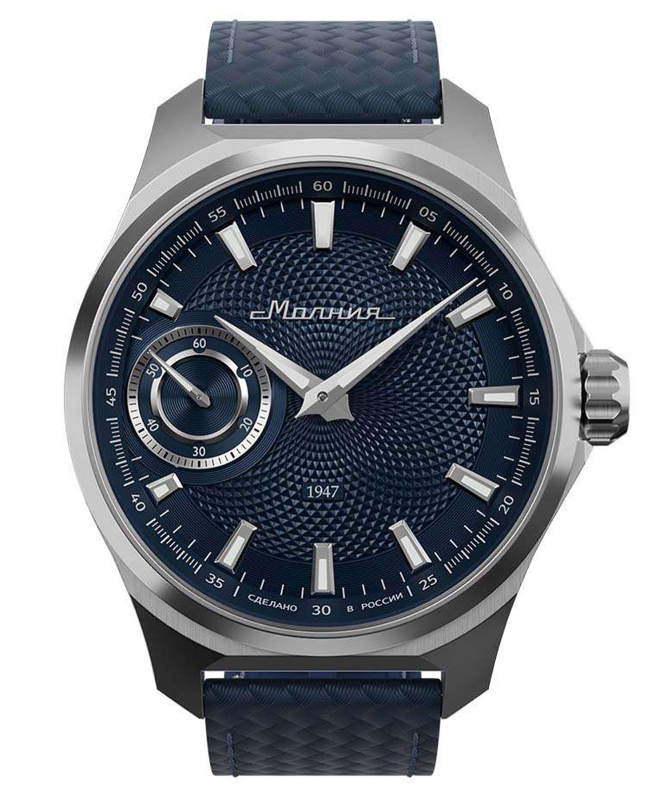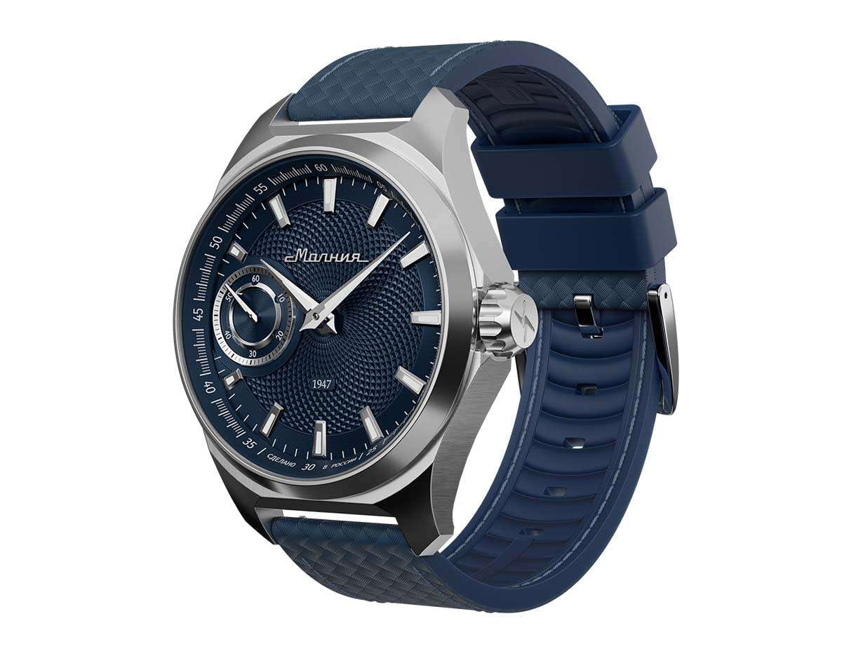 Мужские механические часы с ручным подзаводом — это аксессуар от легендарного бренда «МОЛНИЯ», созданный на Челябинском часовом заводе. Корпус диаметром 42 мм выполнен из нержавеющей стали 316L с зеркальной полировкой. БезельБезельВнешний ободок, закрепляющий стекло. В спортивных часах так называется поворотное кольцо с делениями на циферблате, выполняет роль таймера – замеряет отрезки времени на шкале. Неподвижный безель – элемент декора. Однонаправленно вращающийся безель на дайверских часах позволяет фиксировать моменты погружения и выныривания на поверхность. также выполнен из стали с зеркальной отделкой. Циферблат синего цвета оформлен индексами и стрелками. Малая секундная стрелка вынесена на позицию 9 часов. Стрелки и метки с люминесцентным покрытиемЛюминесцентное покрытиеПозволяет считывать показания времени в темноте. Производители наносят на стрелки, часовые индексы, безель или поверхность циферблата светонакопительный состав, дающий холодное свечение. Super-LumiNova, обеспечивающим хорошую читаемость в темноте. Циферблат защищён сапфировым стекломСапфировое стеклоПрочный и надёжный материал из кристалла сапфира синтетического происхождения, характеризующийся особой твёрдостью и устойчивостью к царапинам и повреждениям. с антибликовым покрытиемАнтибликовое покрытиеСлой оксида металла в 0,13-0,3 микрон, благодаря которому стекло часов не бликует и не отражает свет. Антибликовое покрытие уменьшает отражение света в 10 раз, обеспечивая отличную читаемость показателей циферблата.. Механизм — мануфактурный калибр 3603, собранный вручную, с запасом хода до 40 часов. Прозрачная задняя крышка позволяет наблюдать за работой механизма. Часы оснащены силиконовым ремешком синего цвета с классической пряжкой, а также системой быстрой замены. Водонепроницаемость 100 м позволяет использовать часы для плавания и повседневного ношения. Идеальный выбор для тех, кто ценит российское качество и традиции.