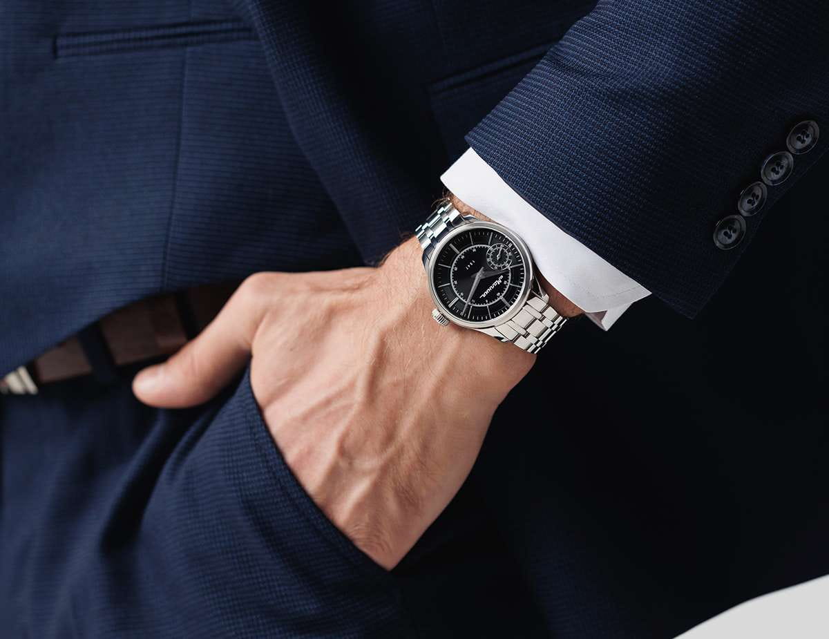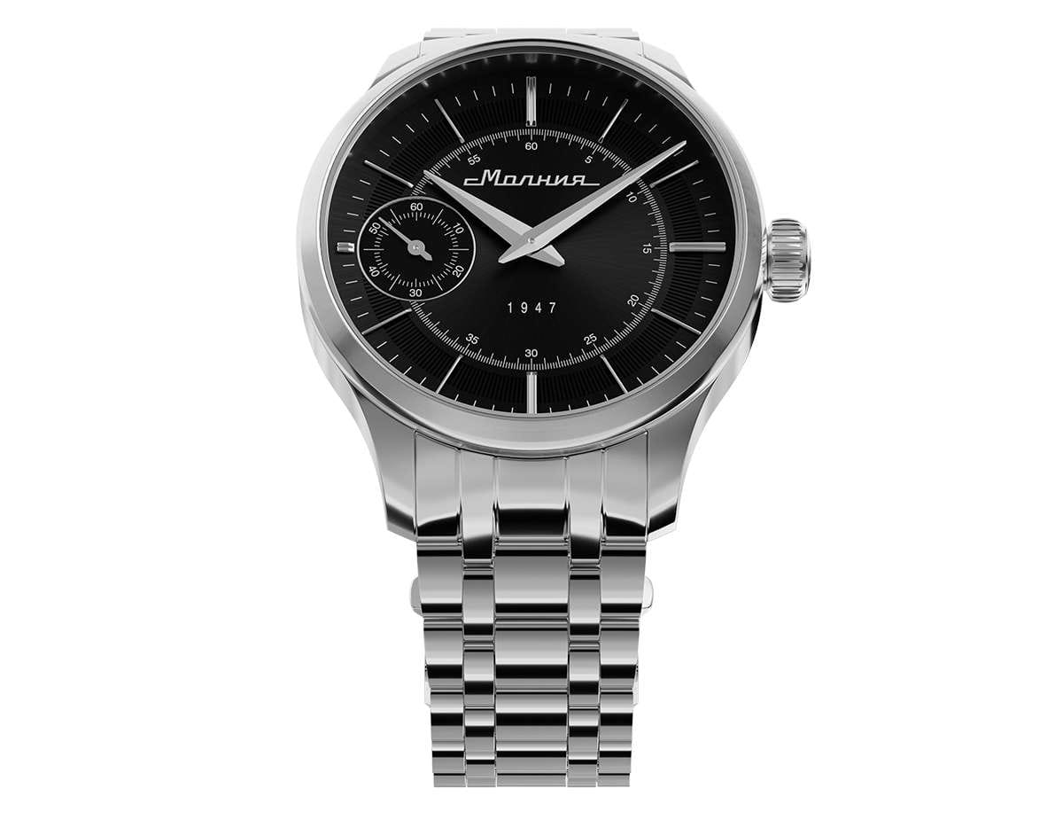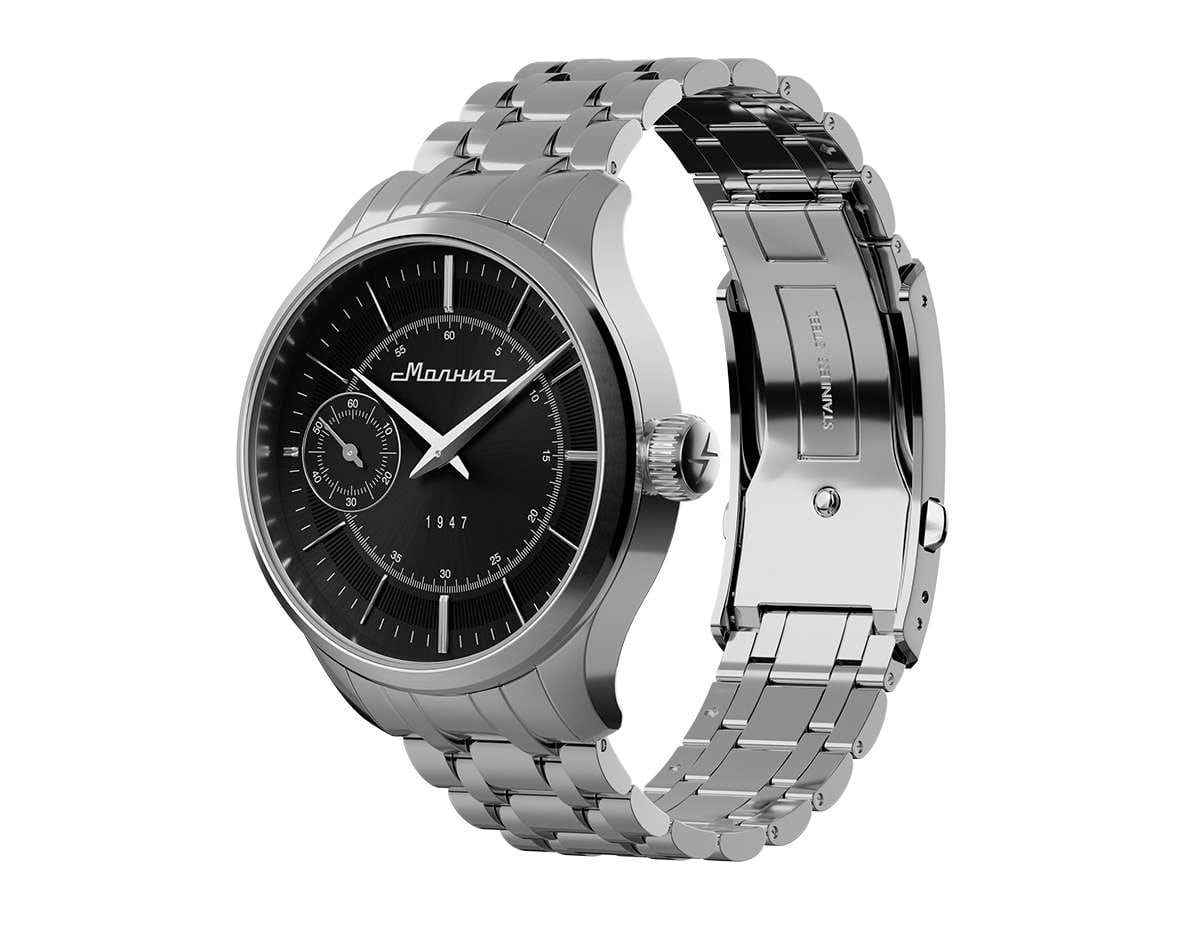 Мужские механические часы с ручным подзаводом — это аксессуар от легендарного бренда «МОЛНИЯ», созданный на Челябинском часовом заводе. Корпус диаметром 41 мм выполнен из нержавеющей стали 316L с зеркальной полировкой. БезельБезельВнешний ободок, закрепляющий стекло. В спортивных часах так называется поворотное кольцо с делениями на циферблате, выполняет роль таймера – замеряет отрезки времени на шкале. Неподвижный безель – элемент декора. Однонаправленно вращающийся безель на дайверских часах позволяет фиксировать моменты погружения и выныривания на поверхность. также выполнен из стали с зеркальной отделкой. Циферблат чёрного цвета оформлен индексами и стрелками. Малая секундная стрелка вынесена на позицию 9 часов. Циферблат защищён сапфировым стекломСапфировое стеклоПрочный и надёжный материал из кристалла сапфира синтетического происхождения, характеризующийся особой твёрдостью и устойчивостью к царапинам и повреждениям. толщиной 2 мм. Механизм — мануфактурный калибр 3603, собранный вручную, с запасом хода до 40 часов. Прозрачная задняя крышка позволяет наблюдать за работой механизма. Часы оснащены стальным браслетом с раскладной застёжкойРаскладная застёжкаТакой тип застёжки используется только на браслетах из металла. Она никогда не раскрывается полностью, происходит разделение на 2 и более частей. Раскладывающая застёжка снизит вероятность потери часов к минимуму. с кнопочным открытием и системой быстрой замены. Водонепроницаемость 50 м позволяет использовать часы в повседневных условиях. Идеальный выбор для тех, кто ценит российское качество и традиции.