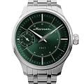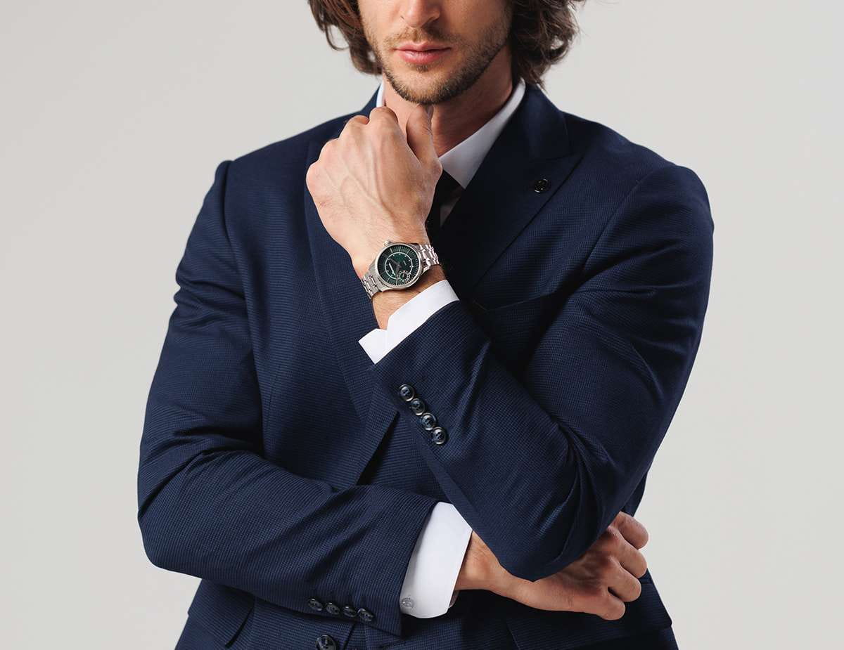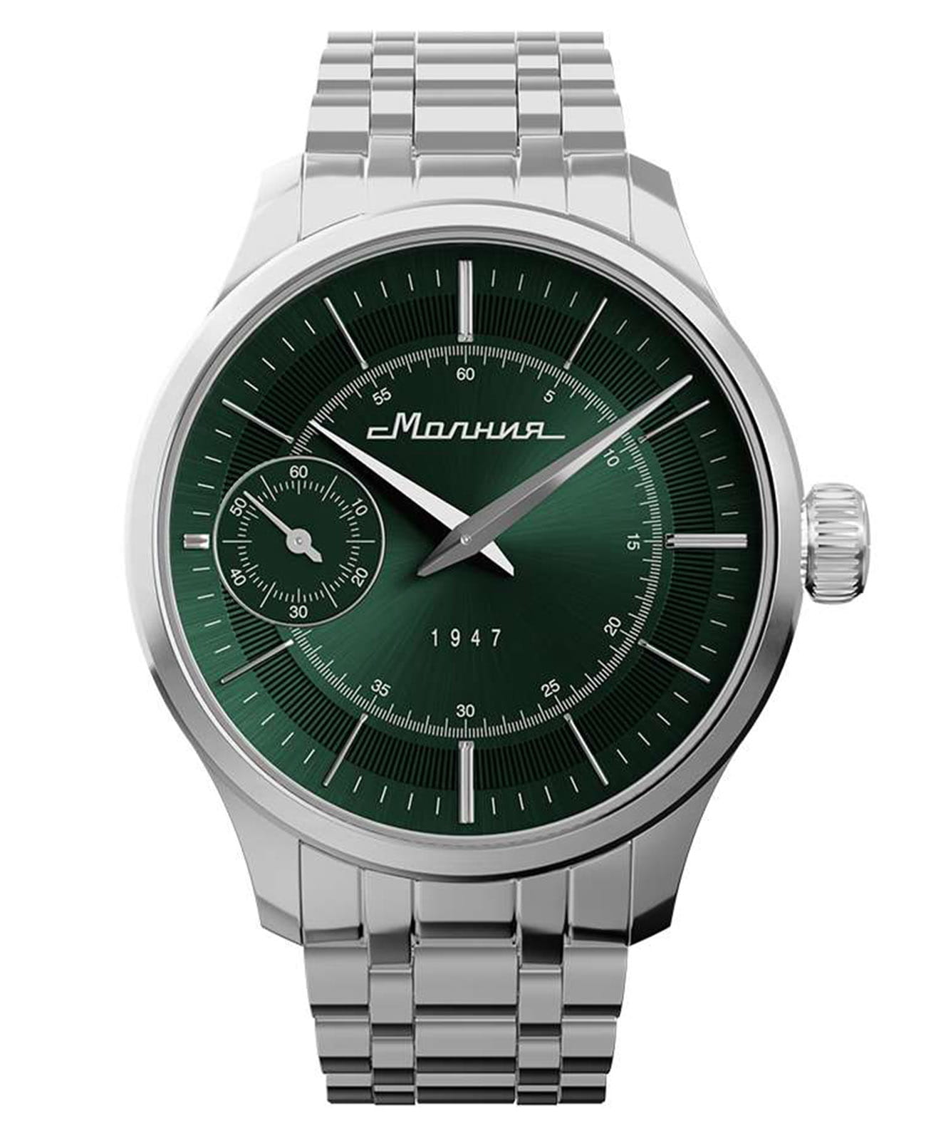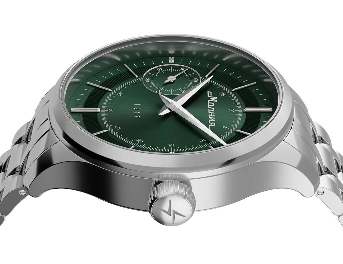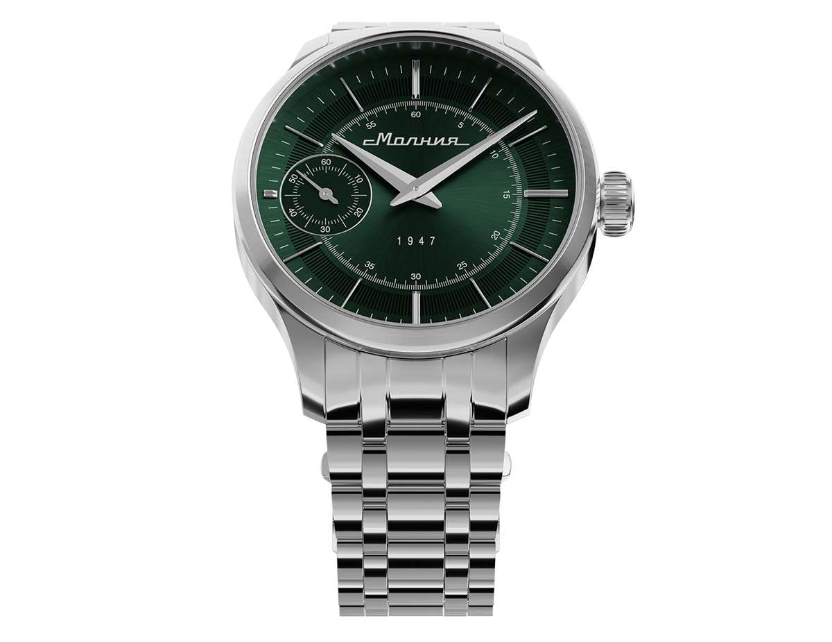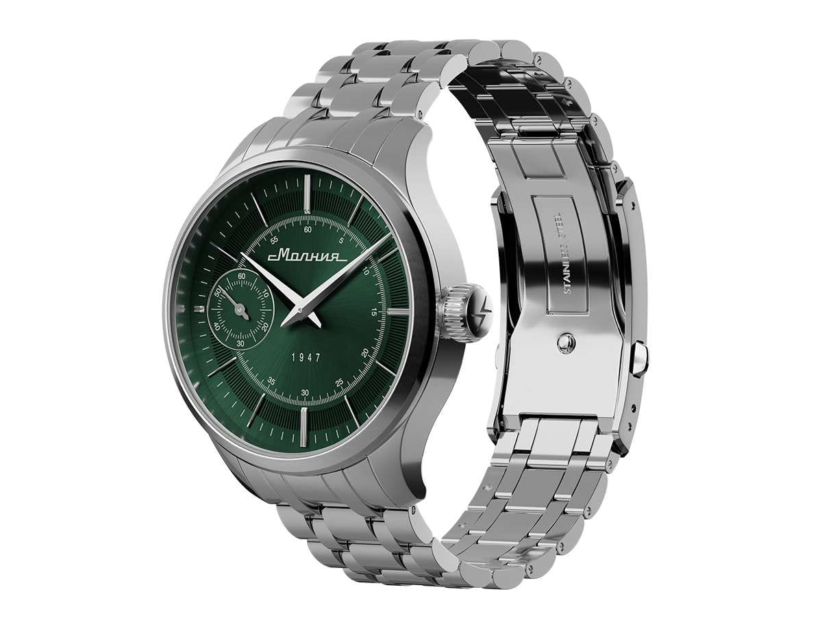Мужские механические часы с ручным подзаводом — это аксессуар от легендарного бренда «МОЛНИЯ», созданный на Челябинском часовом заводе. Корпус диаметром 41 мм выполнен из нержавеющей стали 316L с зеркальной полировкой. БезельБезельВнешний ободок, закрепляющий стекло. В спортивных часах так называется поворотное кольцо с делениями на циферблате, выполняет роль таймера – замеряет отрезки времени на шкале. Неподвижный безель – элемент декора. Однонаправленно вращающийся безель на дайверских часах позволяет фиксировать моменты погружения и выныривания на поверхность. также выполнен из стали с зеркальной отделкой. Циферблат зелёного цвета оформлен индексами и стрелками. Малая секундная стрелка вынесена на позицию 9 часов. Циферблат защищён сапфировым стекломСапфировое стеклоПрочный и надёжный материал из кристалла сапфира синтетического происхождения, характеризующийся особой твёрдостью и устойчивостью к царапинам и повреждениям. толщиной 2 мм. Механизм — мануфактурный калибр 3603, собранный вручную, с запасом хода до 40 часов. Прозрачная задняя крышка позволяет наблюдать за работой механизма. Часы оснащены стальным браслетом с раскладной застёжкойРаскладная застёжкаТакой тип застёжки используется только на браслетах из металла. Она никогда не раскрывается полностью, происходит разделение на 2 и более частей. Раскладывающая застёжка снизит вероятность потери часов к минимуму. с кнопочным открытием и системой быстрой замены. Водонепроницаемость 50 м позволяет использовать часы в повседневных условиях. Идеальный выбор для тех, кто ценит российское качество и традиции.