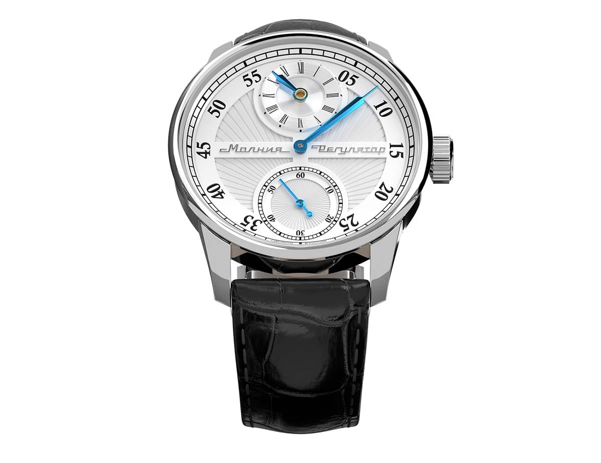 Мужские механические часы с ручным подзаводом — это аксессуар от легендарного бренда «МОЛНИЯ», созданный на Челябинском часовом заводе. Корпус диаметром 42 мм выполнен из нержавеющей стали. Циферблат оформлен индексами и стрелками. Малая секундная стрелка вынесена на отдельный субциферблат. Циферблат защищён сапфировым стекломСапфировое стеклоПрочный и надёжный материал из кристалла сапфира синтетического происхождения, характеризующийся особой твёрдостью и устойчивостью к царапинам и повреждениям.. Механизм — мануфактурный калибр 3603RS, полностью собранный вручную, с декорированными деталями, которые видны через прозрачную заднюю крышку. Часы оснащены кожаным ремешком чёрного цвета с раскладной застёжкойРаскладная застёжкаТакой тип застёжки используется только на браслетах из металла. Она никогда не раскрывается полностью, происходит разделение на 2 и более частей. Раскладывающая застёжка снизит вероятность потери часов к минимуму.. Водонепроницаемость 100 м позволяет использовать часы для плавания и повседневного ношения. Идеальный выбор для тех, кто ценит российское качество и традиции.
