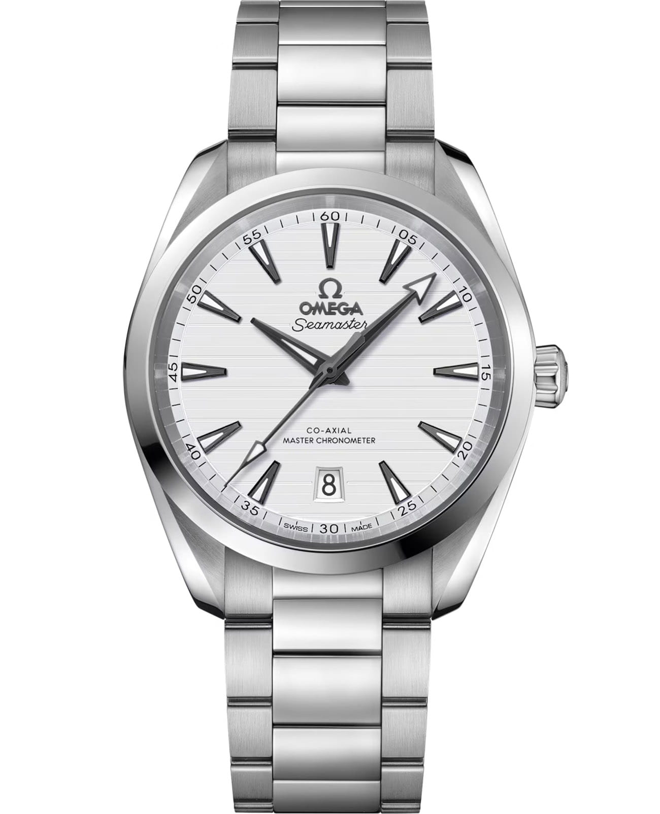 Omega Seamaster Aqua Terra выполнены в симметричном корпусе из нержавеющей стали с завинчивающейся задней крышкой, украшенной волновым узором. Циферблат дополнен окошком даты на 6 часах и оформлен горизонтальным рисунком, вдохновлённым текстурой тикового дерева палуб яхт. Стрелки и метки оснащены люминесцентным покрытиемЛюминесцентное покрытиеПозволяет считывать показания времени в темноте. Производители наносят на стрелки, часовые индексы, безель или поверхность циферблата светонакопительный состав, дающий холодное свечение. Super-LumiNova для лучшей читаемости в темноте. Калибр Omega 8800 сертифицирован как Master Chronometer — гарантия высочайшей точности и устойчивости к магнитным полям. Запас хода составляет 55 часов. Защиту циферблата обеспечивает сапфировое стеклоСапфировое стеклоПрочный и надёжный материал из кристалла сапфира синтетического происхождения, характеризующийся особой твёрдостью и устойчивостью к царапинам и повреждениям. с антибликовым покрытиемАнтибликовое покрытиеСлой оксида металла в 0,13-0,3 микрон, благодаря которому стекло часов не бликует и не отражает свет. Антибликовое покрытие уменьшает отражение света в 10 раз, обеспечивая отличную читаемость показателей циферблата. с обеих сторон. Водозащита позволяет использовать часы в воде без риска повреждения. Часы установлены на полированный и матовый браслет. Это сочетание премиального качества, технологичности и классического дизайна.