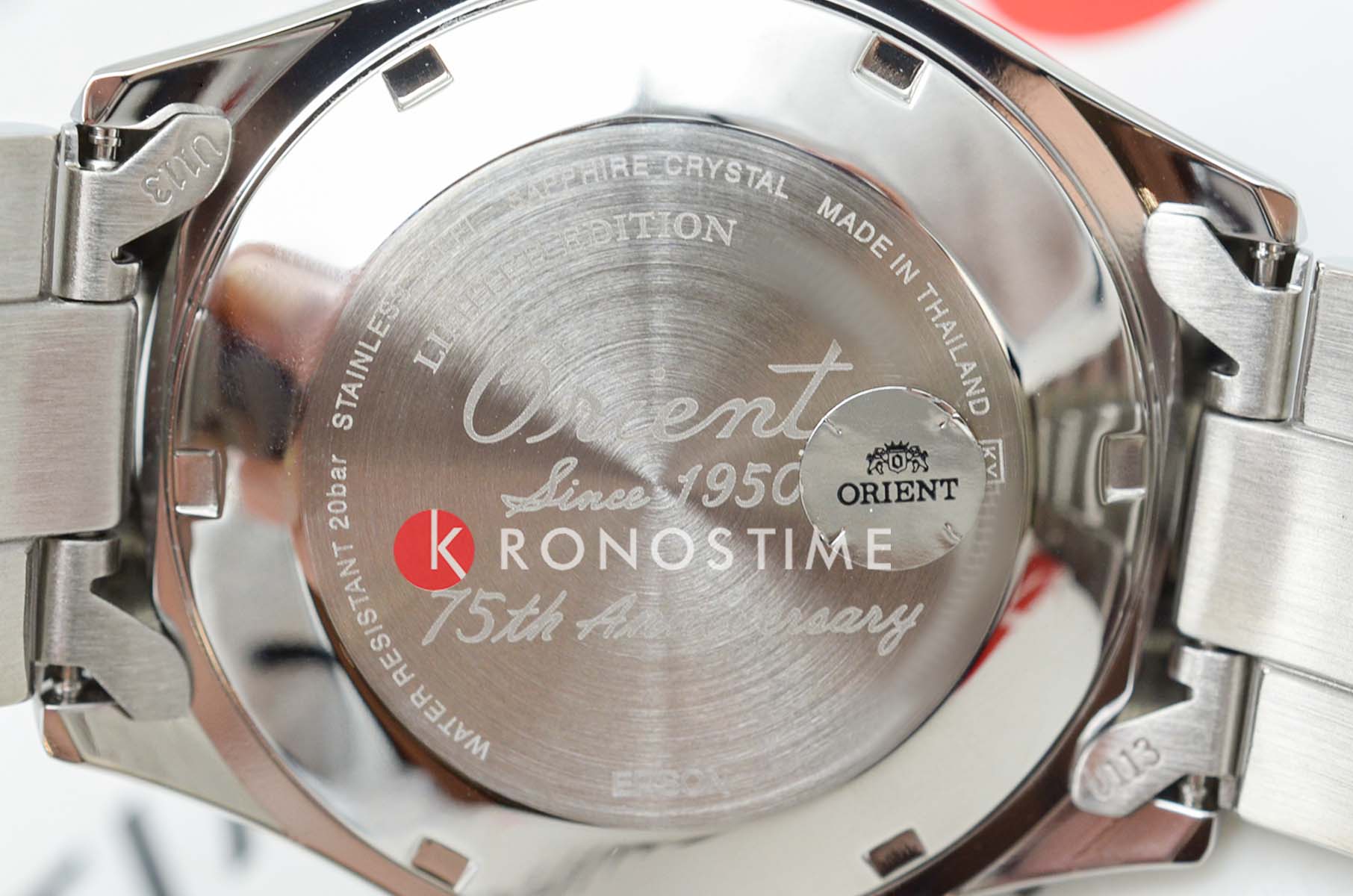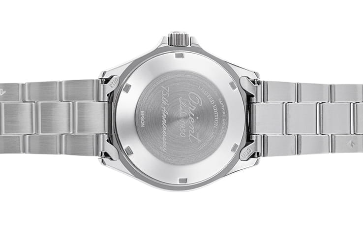 Orient RA‑AA0823L ‘75th Anniversary’ Kamasu (Mako) — лимитированная модель в коллекции дайверских часов, посвящённая 75-летию бренда. Корпус из нержавеющей стали диаметром 41,8 мм с безелем синего цвета оформлен в традиционном стиле, при этом обладает утончёнными юбилейными акцентами и гармоничными пропорциями.