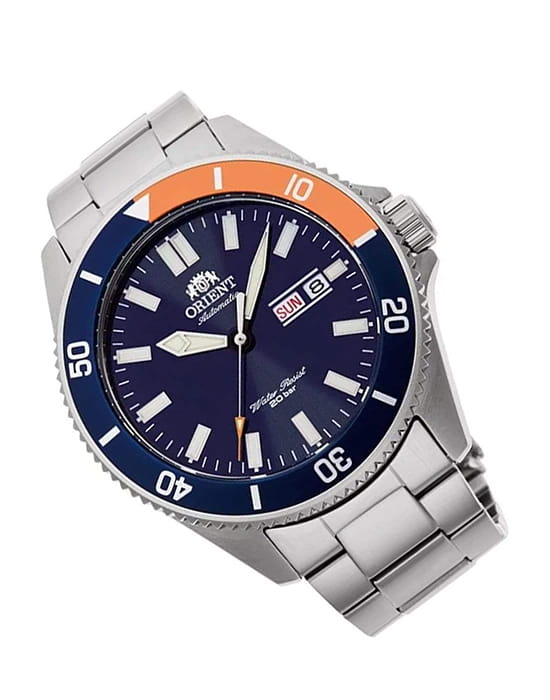 Мужские механические часы с автоподзаводом Orient Diving Sport Automatic RA-AA0913L. Корпус и браслет часов изготовлены из нержавеющей стали. Минеральное стеклоМинеральное стеклоМинеральное стекло представляет собой искусственно выращенный минерал кварца. Такое стекло отличается особой устойчивостью к повреждениям и царапинам. Уступает по некоторым качествам сапфировому стеклу. высокой прозрачности с антибликовым покрытием. БезельБезельВнешний ободок, закрепляющий стекло. В спортивных часах так называется поворотное кольцо с делениями на циферблате, выполняет роль таймера – замеряет отрезки времени на шкале. Неподвижный безель – элемент декора. Однонаправленно вращающийся безель на дайверских часах позволяет фиксировать моменты погружения и выныривания на поверхность. с PVD-покрытиемPVDУльтратонкое покрытие наносится в технике вакуумного напыления, сочетает в себе нитрид титана особой прочности со слоем золота или оксида хрома. Несёт в себе декоративную или защитную функцию.. Окошко дня недели и даты находится в положении 3 часа. Стрелки и метки с люминесцентным покрытиемЛюминесцентное покрытиеПозволяет считывать показания времени в темноте. Производители наносят на стрелки, часовые индексы, безель или поверхность циферблата светонакопительный состав, дающий холодное свечение.. Класс водозащиты: 200 метров, позволит плавать, нырять и заниматься другими водными видами спорта. Стальной браслет на раскладной застёжкеРаскладная застёжкаТакой тип застёжки используется только на браслетах из металла. Она никогда не раскрывается полностью, происходит разделение на 2 и более частей. Раскладывающая застёжка снизит вероятность потери часов к минимуму..