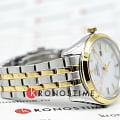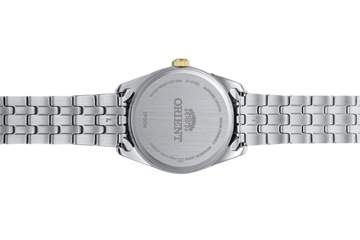 Orient RA-WG0601S — женская кварцевая модель из коллекции Contemporary с элегантным и сдержанным дизайном. Корпус диаметром 32,1 мм выполнен из нержавеющей стали с золотистым PVDPVDУльтратонкое покрытие наносится в технике вакуумного напыления, сочетает в себе нитрид титана особой прочности со слоем золота или оксида хрома. Несёт в себе декоративную или защитную функцию.-покрытием на безелеБезельВнешний ободок, закрепляющий стекло. В спортивных часах так называется поворотное кольцо с делениями на циферблате, выполняет роль таймера – замеряет отрезки времени на шкале. Неподвижный безель – элемент декора. Однонаправленно вращающийся безель на дайверских часах позволяет фиксировать моменты погружения и выныривания на поверхность., создающим изысканный акцент. Белый циферблат украшен тонкими метками и стрелками, обеспечивающими лёгкую читаемость, а апертура даты расположена в позиции «3 часа». Защитную функцию выполняет минеральное стеклоМинеральное стеклоМинеральное стекло представляет собой искусственно выращенный минерал кварца. Такое стекло отличается особой устойчивостью к повреждениям и царапинам. Уступает по некоторым качествам сапфировому стеклу., стойкое к повседневным повреждениям. Часы работают на точном кварцевом механизме на солнечной энергии, не требующем подзавода. Водозащита составляет 5 бар (50 м), что защищает модель от брызг и дождя. Браслет из нержавеющей стали с PVDPVDУльтратонкое покрытие наносится в технике вакуумного напыления, сочетает в себе нитрид титана особой прочности со слоем золота или оксида хрома. Несёт в себе декоративную или защитную функцию.-покрытием гармонично завершает образ, подчеркивая классический стиль и универсальность этих часов.