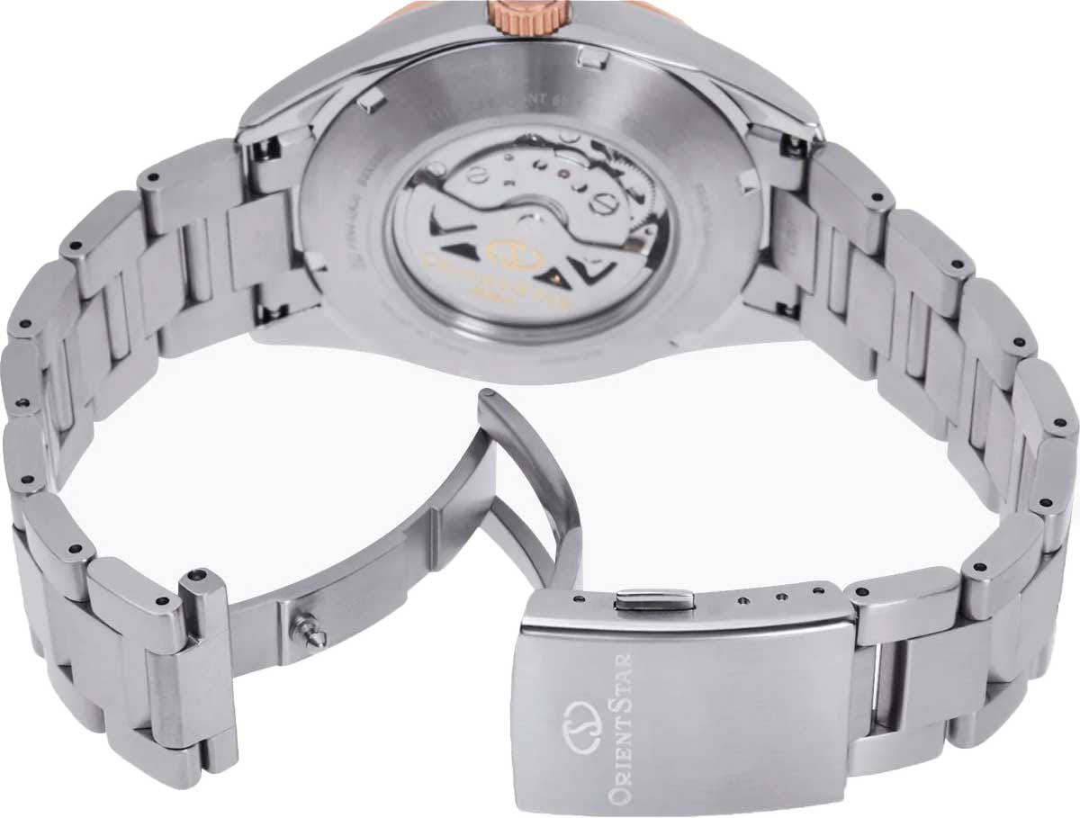 Мужские наручные часы Orient Star RE-AU0401S с автоматическим механизмом. Сапфировое стеклоСапфировое стеклоПрочный и надёжный материал из кристалла сапфира синтетического происхождения, характеризующийся особой твёрдостью и устойчивостью к царапинам и повреждениям., выпуклое с обеих сторон, внутреннее антибликовое покрытие. Запас хода 50 часов. Неподвижный безельБезельВнешний ободок, закрепляющий стекло. В спортивных часах так называется поворотное кольцо с делениями на циферблате, выполняет роль таймера – замеряет отрезки времени на шкале. Неподвижный безель – элемент декора. Однонаправленно вращающийся безель на дайверских часах позволяет фиксировать моменты погружения и выныривания на поверхность. из нержавеющей стали с PVD-покрытиемPVDУльтратонкое покрытие наносится в технике вакуумного напыления, сочетает в себе нитрид титана особой прочности со слоем золота или оксида хрома. Несёт в себе декоративную или защитную функцию.. Водозащита: 50 метров, позволит защитить корпус от случайных брызг или капель дождя. Стальной браслет на раскладной застёжкеРаскладная застёжкаТакой тип застёжки используется только на браслетах из металла. Она никогда не раскрывается полностью, происходит разделение на 2 и более частей. Раскладывающая застёжка снизит вероятность потери часов к минимуму..
