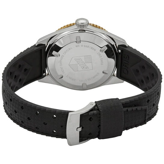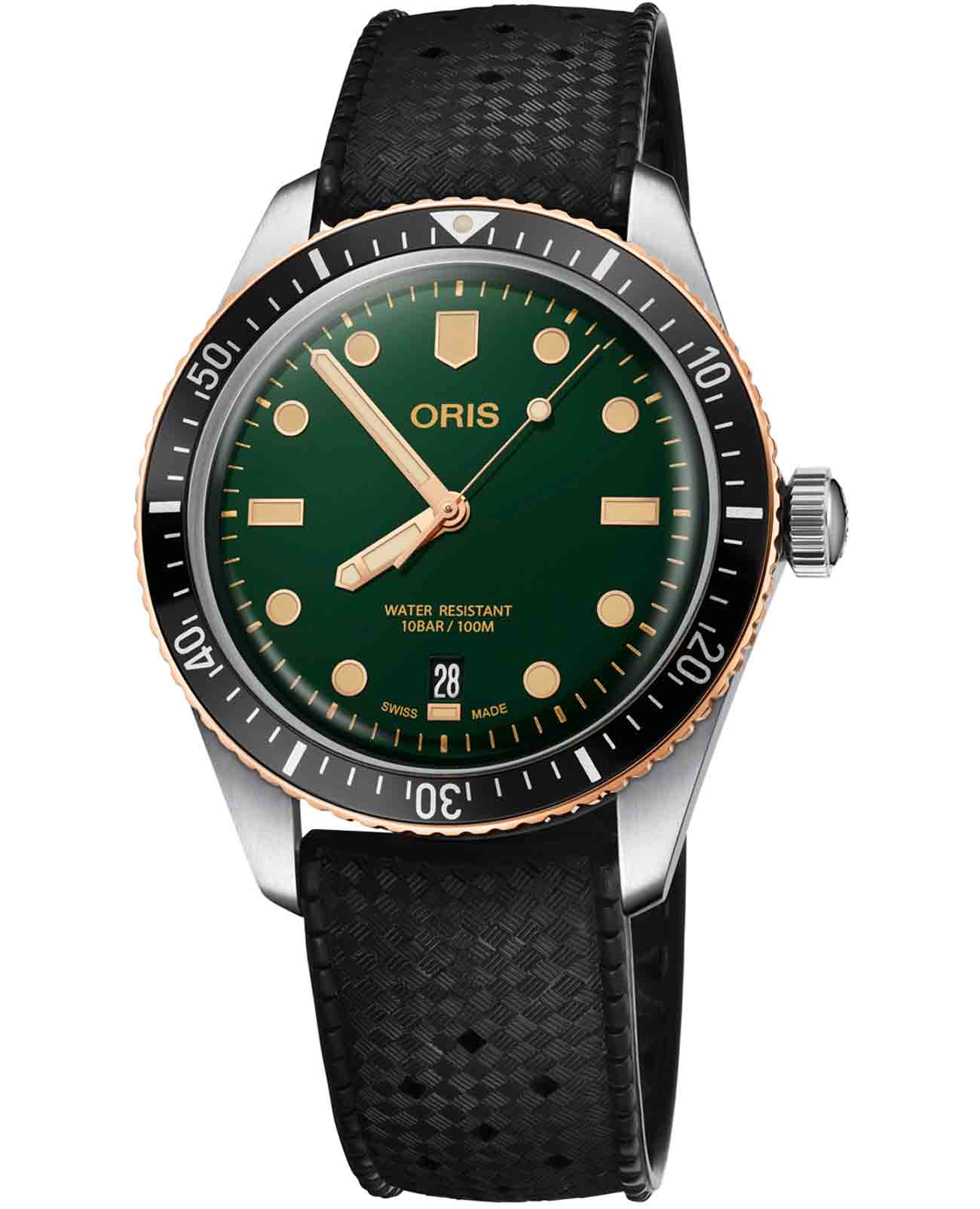 Oris 01 733 7707 4357-07 4 20 18 Divers Sixty-Five – это часы, сочетающие в себе классический дизайн и современную функциональность. Корпус из нержавеющей стали диаметром 40 мм идеально подходит для тех, кто ценит утонченность и стиль. Сапфировое стеклоСапфировое стеклоПрочный и надёжный материал из кристалла сапфира синтетического происхождения, характеризующийся особой твёрдостью и устойчивостью к царапинам и повреждениям. с антибликовым покрытием защищает циферблат от царапин и обеспечивает отличную читаемость при любом освещении. Каучуковый браслет на стандартной застёжке идеально дополняет дизайн часов, обеспечивая комфортное ношение. Стрелки и метки с люминесцентным покрытиемЛюминесцентное покрытиеПозволяет считывать показания времени в темноте. Производители наносят на стрелки, часовые индексы, безель или поверхность циферблата светонакопительный состав, дающий холодное свечение. позволят следить за временем даже в полной темноте. Вращающийся безельБезельВнешний ободок, закрепляющий стекло. В спортивных часах так называется поворотное кольцо с делениями на циферблате, выполняет роль таймера – замеряет отрезки времени на шкале. Неподвижный безель – элемент декора. Однонаправленно вращающийся безель на дайверских часах позволяет фиксировать моменты погружения и выныривания на поверхность. с бронзовым поворотным кольцом. Часы оснащены центральной секундной стрелкой и окошком даты в положении «6 часов», что делает их функциональными для повседневного использования. Автоматический механизм на базе калибра 733 с 38-часовым запасом хода. Часы обладают водонепроницаемостью в 10 бар (100 метров). Механизм с автоподзаводом, скрытый внутри, является сердцем этих часов, гарантируя безупречную работу на протяжении многих лет.