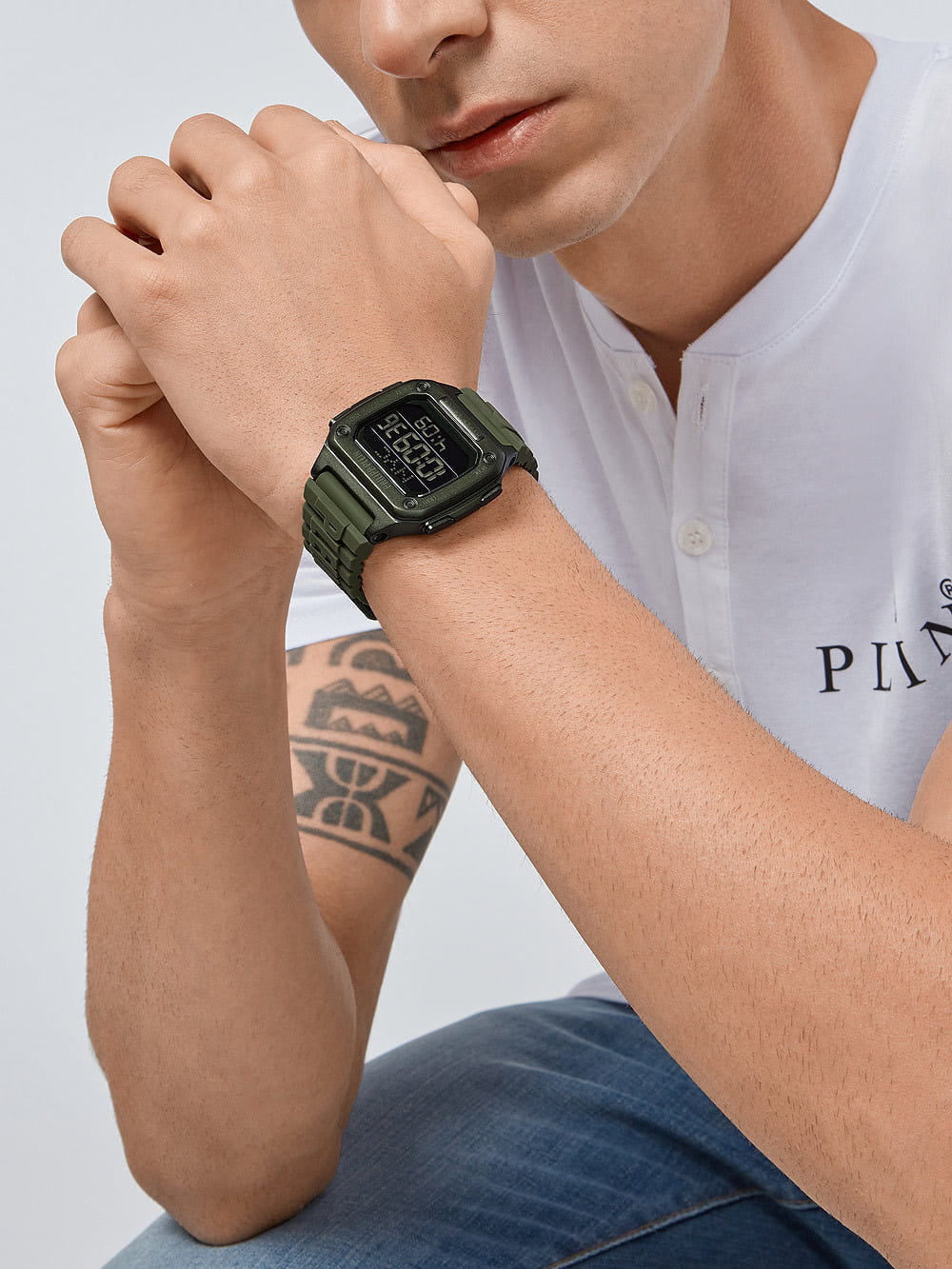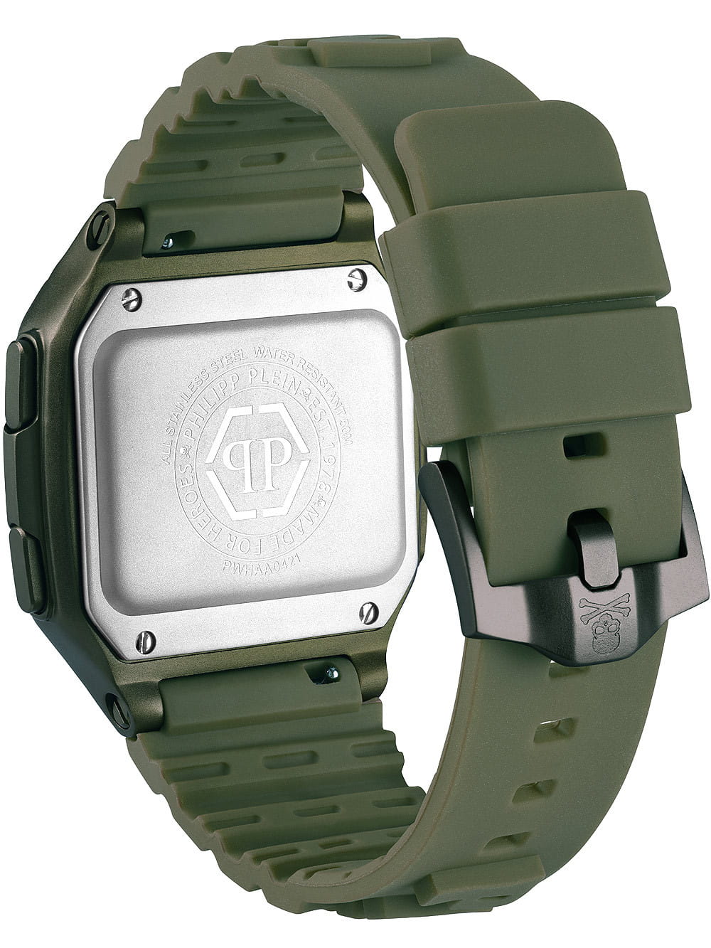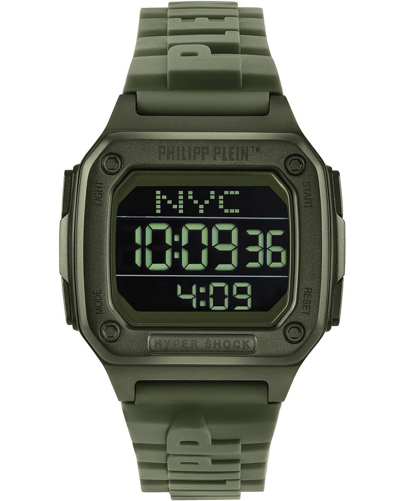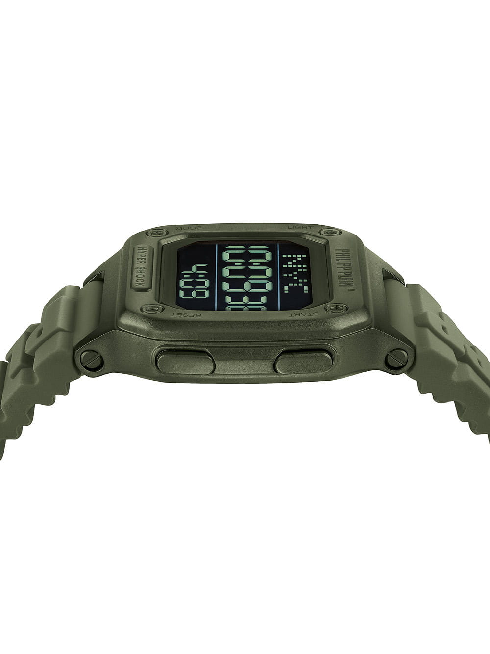 Электронные унисекс часы-хронографХронографФункция позволяет измерять отрезки времени с особой точностью: часы, минуты, секунды. Верным признаком хронографа является наличие на циферблате 3 дополнительных окошек-счётчиков. Philipp Plein Hyper Shock PWHAA0421, электронный механизм с высокой точностью. Класс водозащиты: 50 метров, позволит защитить корпус от случайных брызг или капель дождя. Прямоугольный корпус выполнен из нержавеющей стали с IP-покрытиемIP-покрытиеМетод ионного напыления. Демонстрирует повышенную устойчивость к истиранию, окислению и химическим веществам. Под воздействием высокого давления и температуры около 1500°C молекулы металла надёжно соединяются с частицами корпуса часов. зеленого цвета. Силиконовый ремешок шириной 22 мм, со стандартной застежкой.