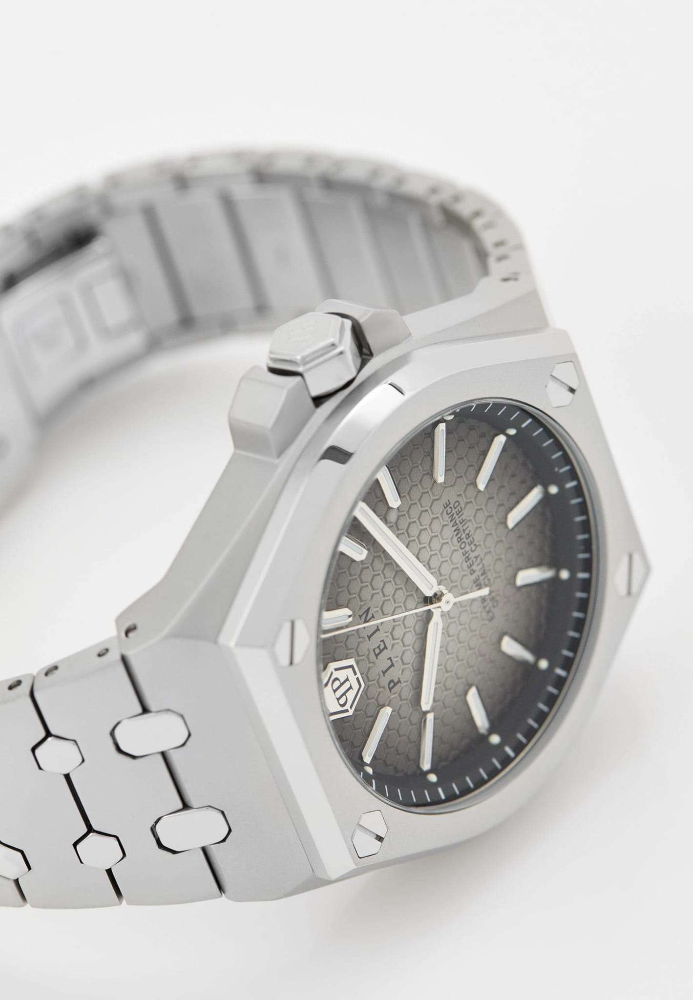 Современный стиль и безупречное исполнение сливаются в каждой детали этих брендовых часов, которые каждую секунду будут напоминать вам о ценности времени. Мужские часы с японским кварцевым механизмом. Круглый стальной корпус украшен знаковыми винтами. Циферблат с текстурой гексагон выполнен по технологии Sunray (солнечные лучи) и декорирован шестиугольным логотипом бренда в положении 12 часов. Метки в виде штрихов. Минеральное стеклоМинеральное стеклоМинеральное стекло представляет собой искусственно выращенный минерал кварца. Такое стекло отличается особой устойчивостью к повреждениям и царапинам. Уступает по некоторым качествам сапфировому стеклу. устойчивое к мелким механическим повреждениям. Граненая заводная головка с защитой. Стальной браслет на раскладной застёжкеРаскладная застёжкаТакой тип застёжки используется только на браслетах из металла. Она никогда не раскрывается полностью, происходит разделение на 2 и более частей. Раскладывающая застёжка снизит вероятность потери часов к минимуму... Фирменная дизайнерская упаковка.