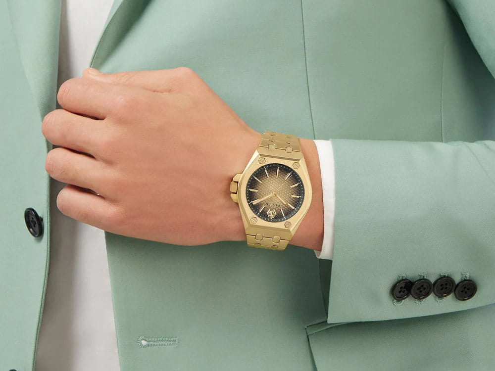 Современный стиль и безупречное исполнение сливаются в каждой детали этих брендовых часов, которые каждую секунду будут напоминать вам о ценности времени. Мужские часы с японским кварцевым механизмом. Круглый стальной корпус украшен знаковыми винтами. Циферблат с текстурой гексагон выполнен по технологии Sunray (солнечные лучи) и декорирован шестиугольным логотипом бренда в положении 12 часов. Метки в виде штрихов. Минеральное стеклоМинеральное стеклоМинеральное стекло представляет собой искусственно выращенный минерал кварца. Такое стекло отличается особой устойчивостью к повреждениям и царапинам. Уступает по некоторым качествам сапфировому стеклу. устойчивое к мелким механическим повреждениям. Граненая заводная головка с защитой. Стальной браслет с IP-покрытиемIP-покрытиеМетод ионного напыления. Демонстрирует повышенную устойчивость к истиранию, окислению и химическим веществам. Под воздействием высокого давления и температуры около 1500°C молекулы металла надёжно соединяются с частицами корпуса часов. на застёжке-бабочке с кнопкамиЗастёжка "бабочка"Такой вид застёжки дополняется предохранителями, помогающими избежать случайного раскрытия браслета. Обладают изящным исполнением. . Фирменная дизайнерская упаковка.