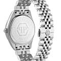Philipp Plein Date Superlative Gent PWMFA0225 - это дерзкие и бескомпромиссные часы, воплощающие бунтарский дух бренда. Диаметр круглого корпуса из прочной нержавеющей стали равен 41 мм. Стальной браслет на застёжке «бабочка» с кнопкамиЗастёжка "бабочка"Такой вид застёжки дополняется предохранителями, помогающими избежать случайного раскрытия браслета. Обладают изящным исполнением. обеспечивает надёжную фиксацию и комфортное ношение. Метки в виде кристаллов Preciosa. Минеральное стеклоМинеральное стеклоМинеральное стекло представляет собой искусственно выращенный минерал кварца. Такое стекло отличается особой устойчивостью к повреждениям и царапинам. Уступает по некоторым качествам сапфировому стеклу. защищает циферблат от царапин. Люминесцентное покрытиеЛюминесцентное покрытиеПозволяет считывать показания времени в темноте. Производители наносят на стрелки, часовые индексы, безель или поверхность циферблата светонакопительный состав, дающий холодное свечение. стрелок и меток позволит следить за временем даже в полной темноте. Граненая заводная головка. Влагозащита: 50 метров, позволит защитить корпус от случайных брызг или капель дождя. Идеальный аксессуар для тех, кто ценит индивидуальность и не боится выделяться из толпы.