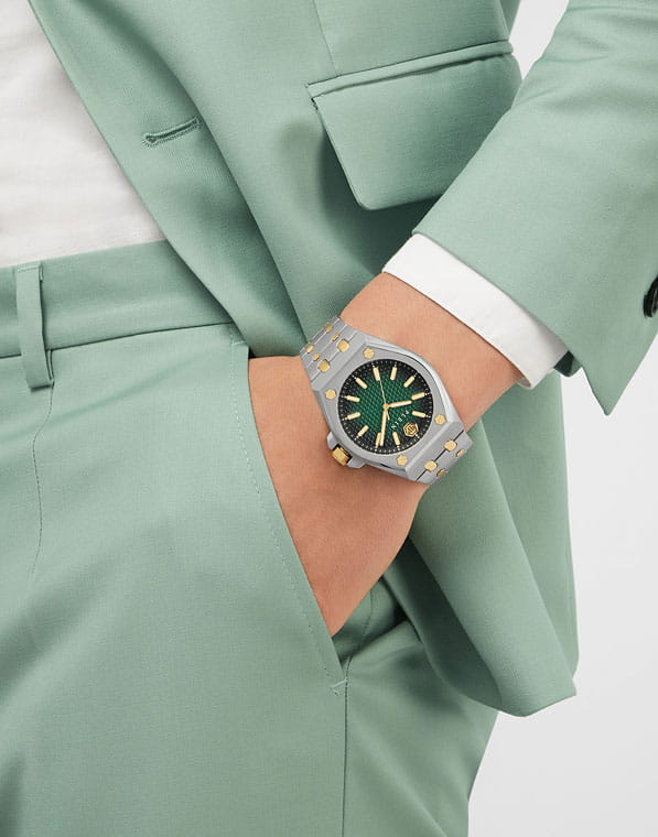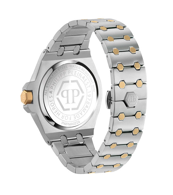 Philipp Plein Plein Extreme Gent PWPMA0224 - это дерзкие и бескомпромиссные часы, воплощающие бунтарский дух бренда. Диаметр круглого корпуса из прочной нержавеющей стали равен 43 мм. Стальной браслет на застёжке «бабочка» с кнопкамиЗастёжка "бабочка"Такой вид застёжки дополняется предохранителями, помогающими избежать случайного раскрытия браслета. Обладают изящным исполнением. обеспечивает надёжную фиксацию и комфортное ношение. Минеральное стеклоМинеральное стеклоМинеральное стекло представляет собой искусственно выращенный минерал кварца. Такое стекло отличается особой устойчивостью к повреждениям и царапинам. Уступает по некоторым качествам сапфировому стеклу. защищает циферблат от царапин. Люминесцентное покрытиеЛюминесцентное покрытиеПозволяет считывать показания времени в темноте. Производители наносят на стрелки, часовые индексы, безель или поверхность циферблата светонакопительный состав, дающий холодное свечение. стрелок и меток позволит следить за временем даже в полной темноте. Граненая заводная головка. Влагозащита: 50 метров, позволит защитить корпус от случайных брызг или капель дождя. Идеальный аксессуар для тех, кто ценит индивидуальность и не боится выделяться из толпы.