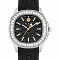 Philipp Plein THE $PECTRE LADY PWTAA0824 - дерзкое заявление любви к роскоши и бунтарскому стилю. Диаметр корпуса из прочной нержавеющей стали равен 38 мм. Силиконовый ремешок на стандартной застёжке обеспечивает надёжную фиксацию и комфортное ношение. Минеральное стеклоМинеральное стеклоМинеральное стекло представляет собой искусственно выращенный минерал кварца. Такое стекло отличается особой устойчивостью к повреждениям и царапинам. Уступает по некоторым качествам сапфировому стеклу. защищает циферблат от царапин. Люминесцентное покрытиеЛюминесцентное покрытиеПозволяет считывать показания времени в темноте. Производители наносят на стрелки, часовые индексы, безель или поверхность циферблата светонакопительный состав, дающий холодное свечение. стрелок и меток позволит следить за временем даже в полной темноте. БезельБезельВнешний ободок, закрепляющий стекло. В спортивных часах так называется поворотное кольцо с делениями на циферблате, выполняет роль таймера – замеряет отрезки времени на шкале. Неподвижный безель – элемент декора. Однонаправленно вращающийся безель на дайверских часах позволяет фиксировать моменты погружения и выныривания на поверхность. инкрустирован кристаллами Preciosa. Влагозащита: 50 метров, позволит защитить корпус от случайных брызг или капель дождя. Идеальный аксессуар для тех, кто ценит индивидуальность и не боится выделяться из толпы.