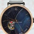 Женские механические часы с автоподзаводом Pierre Lannier Celeste 302F789. Минеральное стеклоМинеральное стеклоМинеральное стекло представляет собой искусственно выращенный минерал кварца. Такое стекло отличается особой устойчивостью к повреждениям и царапинам. Уступает по некоторым качествам сапфировому стеклу. устойчивое к мелким механическим повреждениям. Центральные часовая, минутная и секундная стрелки. Корпус и браслет выполнен из нержавеющей стали с IP-покрытиемIP-покрытиеМетод ионного напыления. Демонстрирует повышенную устойчивость к истиранию, окислению и химическим веществам. Под воздействием высокого давления и температуры около 1500°C молекулы металла надёжно соединяются с частицами корпуса часов.. Водостойкость: 30 метров, позволит защитить корпус от случайных брызг или капель дождя. Прозрачная задняя крышка. Браслет миланского плетения с раскладной застёжкойРаскладная застёжкаТакой тип застёжки используется только на браслетах из металла. Она никогда не раскрывается полностью, происходит разделение на 2 и более частей. Раскладывающая застёжка снизит вероятность потери часов к минимуму..