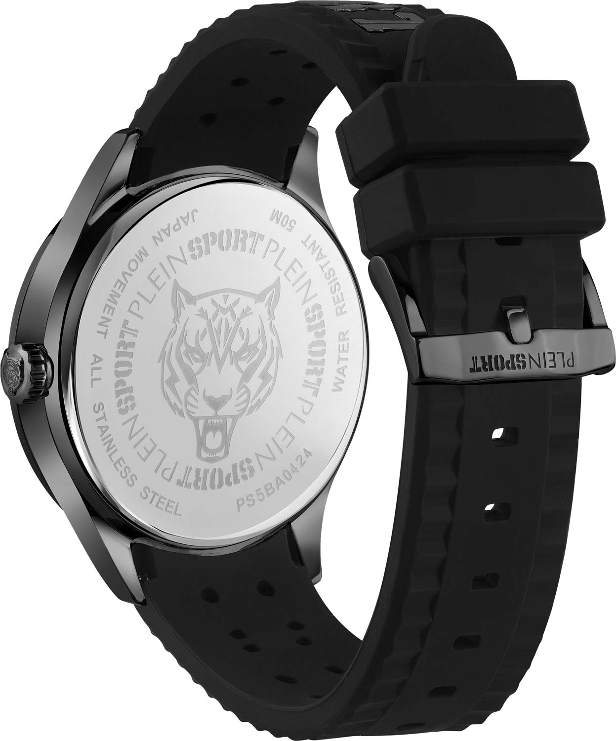 Дерзкий аксессуар со смелым, бунтарским дизайном будет с вами в любом приключении. Мужские кварцевые Plein Sport PS5BA0424 часы. Корпус часов изотовлен из стали с IP-покрытиемIP-покрытиеМетод ионного напыления. Демонстрирует повышенную устойчивость к истиранию, окислению и химическим веществам. Под воздействием высокого давления и температуры около 1500°C молекулы металла надёжно соединяются с частицами корпуса часов.. Циферблат дополнен паттерном ''след когтей''. Метки в виде штрихов, фирменное лого в виде тигра в положении 6 часов. Рифленая заводная головка с защитой. Класс водозащиты: 50 метров, позволит защитить корпус от случайных брызг или капель дождя. Силиконовый ремешок на стандартной застежке.
