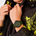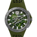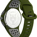 Дерзкий аксессуар со смелым, бунтарским дизайном будет с вами в любом приключении. Мужские часы-хронографХронографФункция позволяет измерять отрезки времени с особой точностью: часы, минуты, секунды. Верным признаком хронографа является наличие на циферблате 3 дополнительных окошек-счётчиков. с секундомеромСекундомерСекундоме́р — прибор, способный измерять интервалы времени с точностью до долей секунды. с тахиметромТахиметрРазмеченная шкала, располагается на ободке или безеле часов. Тахиметр позволяет рассчитать скорость на определённом участке пути, расстояние измеряется в километрах или милях.. Корпус часов изотовлен из нержавеющей стали с IP-покрытиемIP-покрытиеМетод ионного напыления. Демонстрирует повышенную устойчивость к истиранию, окислению и химическим веществам. Под воздействием высокого давления и температуры около 1500°C молекулы металла надёжно соединяются с частицами корпуса часов.. Циферблат с камуфляжным рисунком дополнен паттерном ''след когтей''. Метки в виде штрихов, фирменное лого в виде тигра в положении 12 часов. Окошко даты находится между часовыми метками 4 и 5. Рифленая заводная головка с защитой. Класс водозащиты: 50 метров, позволит защитить корпус от случайных брызг или капель дождя. Силиконовый ремешок на стандартной застежке.