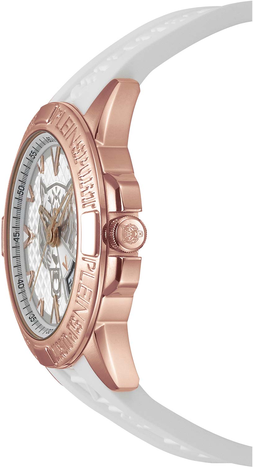 Немецкие мужские кварцевые часы с минеральным стекломМинеральное стеклоМинеральное стекло представляет собой искусственно выращенный минерал кварца. Такое стекло отличается особой устойчивостью к повреждениям и царапинам. Уступает по некоторым качествам сапфировому стеклу. Plein Sport Touchdown PSFBA0723, кварцевый механизм с высокой точностью. Класс водозащиты: 50 метров, позволит защитить корпус от случайных брызг или капель дождя. Корпус выполнен из стали с IP-покрытиемIP-покрытиеМетод ионного напыления. Демонстрирует повышенную устойчивость к истиранию, окислению и химическим веществам. Под воздействием высокого давления и температуры около 1500°C молекулы металла надёжно соединяются с частицами корпуса часов.. Силиконовый ремешок на стандартной застёжке. Минеральное стеклоМинеральное стеклоМинеральное стекло представляет собой искусственно выращенный минерал кварца. Такое стекло отличается особой устойчивостью к повреждениям и царапинам. Уступает по некоторым качествам сапфировому стеклу. устойчивое к мелким механическим повреждениям. Окошко даты находится в положении между 4 и 5 часов.
