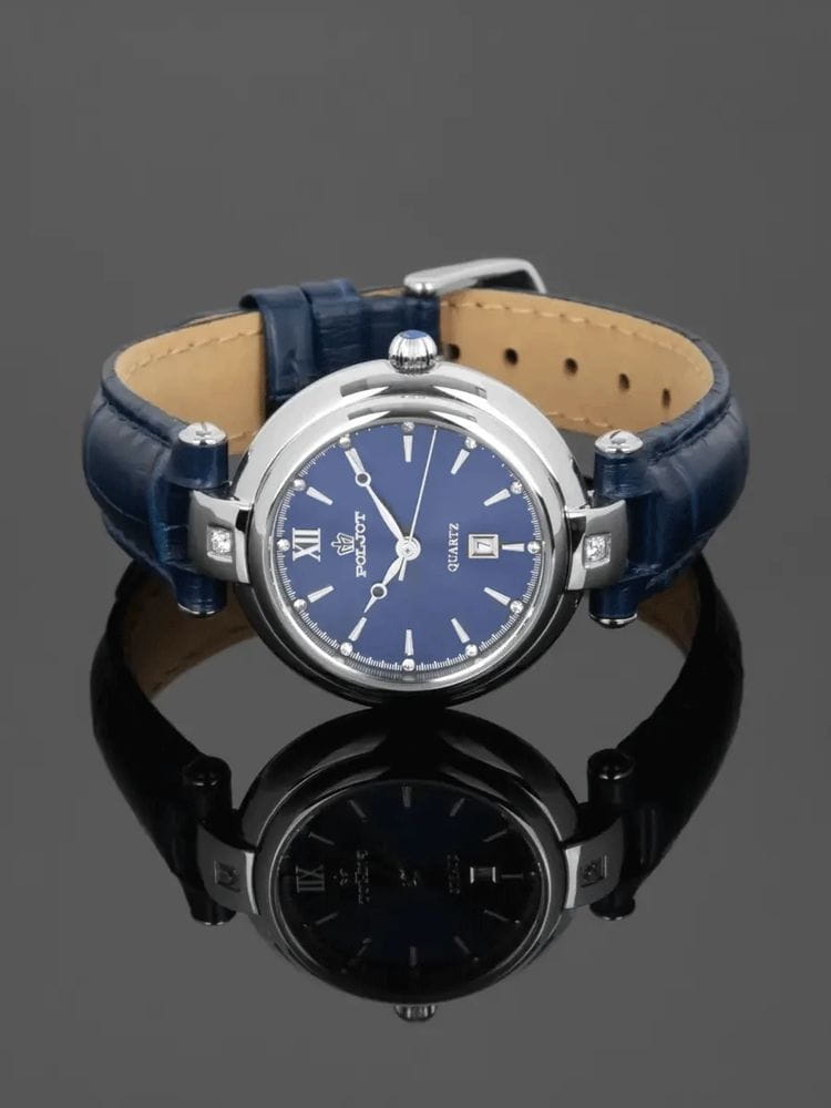 Poljot 2015.671009 — элегантные женские кварцевые часы, созданные в духе классической утончённости и лёгкости. Корпус из нержавеющей стали подчёркивает аккуратные пропорции модели, а глубокий циферблат с римской цифрой XII и изящными стрелками создаёт утончённый контраст и ощущение гармонии. Окно даты на позиции «6 часов» добавляет практичности, сохраняя визуальную чистоту композиции. Прочное минеральное стеклоМинеральное стеклоМинеральное стекло представляет собой искусственно выращенный минерал кварца. Такое стекло отличается особой устойчивостью к повреждениям и царапинам. Уступает по некоторым качествам сапфировому стеклу. защищает циферблат от царапин, а ремешок из натуральной кожи обеспечивает комфортное прилегание и элегантный внешний вид. Poljot — это женственность, точность и стиль в каждой детали, идеальный аксессуар для повседневной элегантности.