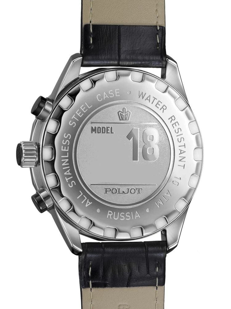 Poljot 6S21.181258 — яркие мужские часы с выразительным спортивным характером и акцентом на функциональность. Корпус из нержавеющей стали придаёт модели надёжность и солидность, а насыщенный циферблат с контрастными счётчиками хронографаХронографФункция позволяет измерять отрезки времени с особой точностью: часы, минуты, секунды. Верным признаком хронографа является наличие на циферблате 3 дополнительных окошек-счётчиков. создаёт динамичный и энергичный облик. БезельБезельВнешний ободок, закрепляющий стекло. В спортивных часах так называется поворотное кольцо с делениями на циферблате, выполняет роль таймера – замеряет отрезки времени на шкале. Неподвижный безель – элемент декора. Однонаправленно вращающийся безель на дайверских часах позволяет фиксировать моменты погружения и выныривания на поверхность. с PVD-покрытиемPVDУльтратонкое покрытие наносится в технике вакуумного напыления, сочетает в себе нитрид титана особой прочности со слоем золота или оксида хрома. Несёт в себе декоративную или защитную функцию.. Широкие стрелки и метки с люминесцентным покрытиемЛюминесцентное покрытиеПозволяет считывать показания времени в темноте. Производители наносят на стрелки, часовые индексы, безель или поверхность циферблата светонакопительный состав, дающий холодное свечение. обеспечивают отличную читаемость в любых условиях, а внешний обод с минутной шкалой подчёркивает спортивный стиль. Окно даты добавляет практичности. Прочное минеральное стеклоМинеральное стеклоМинеральное стекло представляет собой искусственно выращенный минерал кварца. Такое стекло отличается особой устойчивостью к повреждениям и царапинам. Уступает по некоторым качествам сапфировому стеклу. надёжно защищает циферблат от повреждений, а ремешок из натуральной кожи гармонично дополняет контрастную цветовую палитру. Poljot — это смелое сочетание спортивной энергии, точности и современного дизайна для активного и уверенного мужчины.