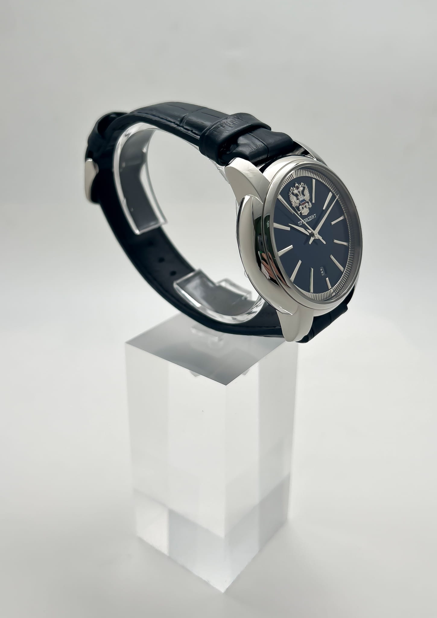 Российские часы Русское время 4950001 оснащены механизмом, что обеспечивает исключительную надежность и точность хода. Корпус часов выполнен из стали, что придает ему долговечность и устойчивость к внешним воздействиям.Сапфировое стеклоСапфировое стеклоПрочный и надёжный материал из кристалла сапфира синтетического происхождения, характеризующийся особой твёрдостью и устойчивостью к царапинам и повреждениям. устойчиво к мелким механическим повреждениям, что гарантирует долговечность и сохранение первоначального вида.