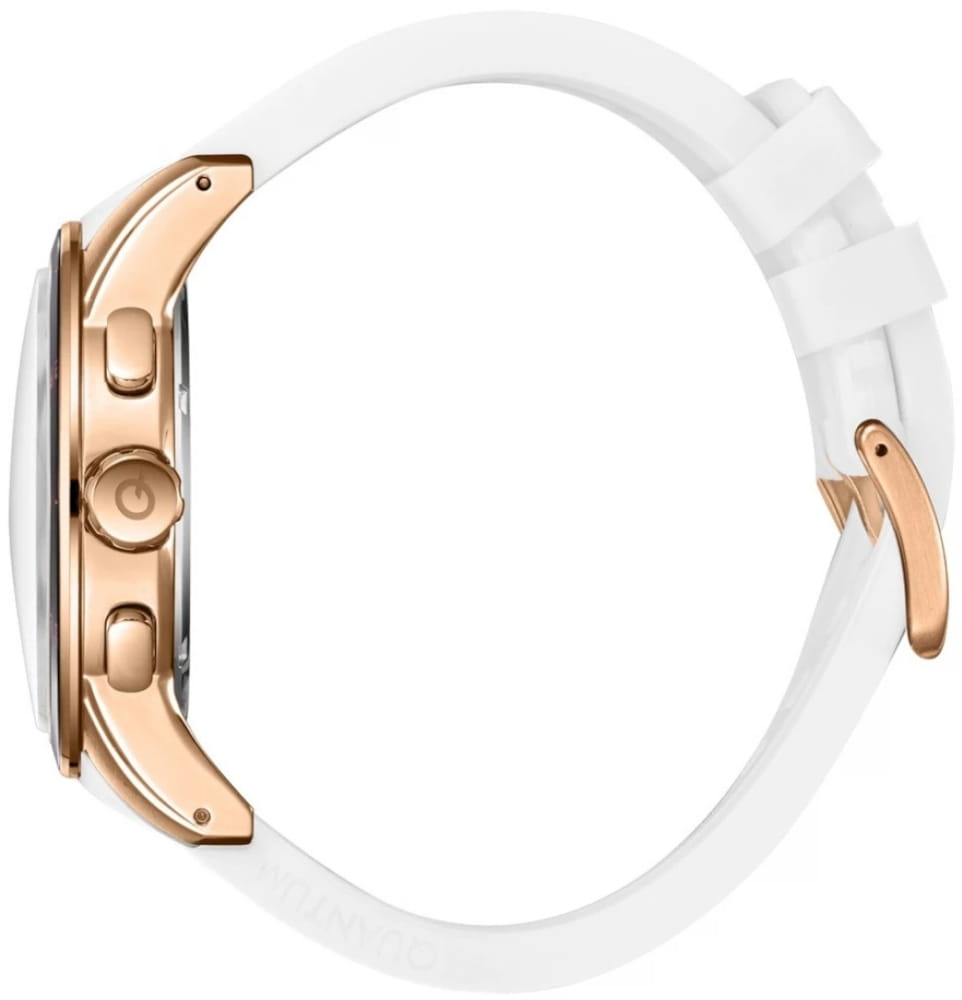 Мужские кварцевые часы Quantum ADG991.433 из коллекции Adrenaline — смелый спортивный акцент с функцией двойного времени. Корпус круглый, из нержавеющей стали с PVD-покрытиемPVDУльтратонкое покрытие наносится в технике вакуумного напыления, сочетает в себе нитрид титана особой прочности со слоем золота или оксида хрома. Несёт в себе декоративную или защитную функцию. цвета розового золота, диаметром 47 мм. Циферблат — бедый с индикацией даты, дня недели и второго часового поясаВторой часовой поясФункция, позволяющая отображать время двух часовых поясов одновременно.. Стекло — минеральноеМинеральное стеклоМинеральное стекло представляет собой искусственно выращенный минерал кварца. Такое стекло отличается особой устойчивостью к повреждениям и царапинам. Уступает по некоторым качествам сапфировому стеклу. с антибликовым покрытием. Водонепроницаемость 100 м. Ремешок — белый силиконовый на стандартной застёжке. Идеальный выбор для тех, кто ценит турецкий дизайн и активный образ жизни.