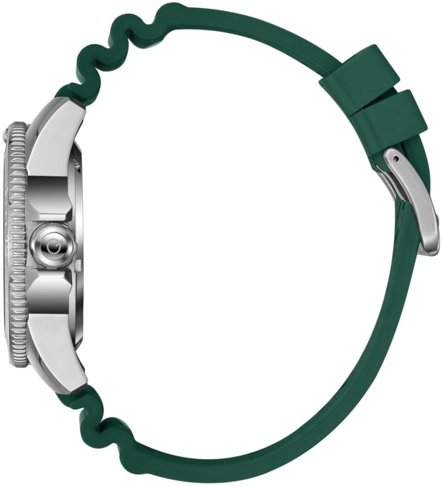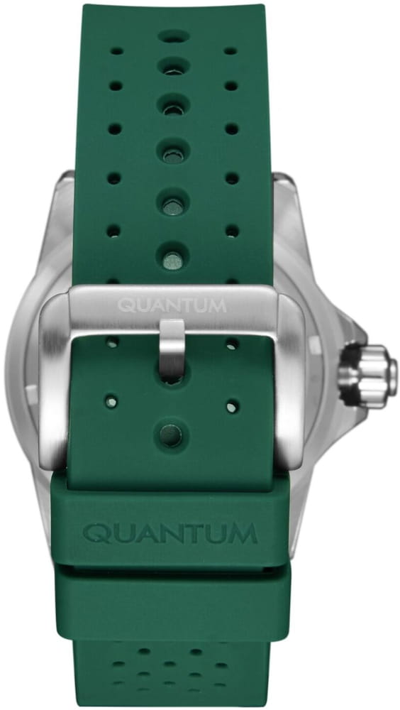 Мужские механические часы с автоподзаводом Quantum BAR1115.375 — надёжный спортивный аксессуар с ярким дизайном и усиленной водозащитой. Корпус круглый, из нержавеющей стали, диаметром 44 мм. Циферблат — зелёный с окошком даты. Стекло — сапфировоеСапфировое стеклоПрочный и надёжный материал из кристалла сапфира синтетического происхождения, характеризующийся особой твёрдостью и устойчивостью к царапинам и повреждениям.. Механизм — японский автоматический Citizen с функцией автоподзавода. Водонепроницаемость 200 м. Ремешок — зелёный силиконовый «гармошка» на стандартной застёжке. Идеальный выбор для тех, кто ценит турецкий дизайн и высокую функциональность.